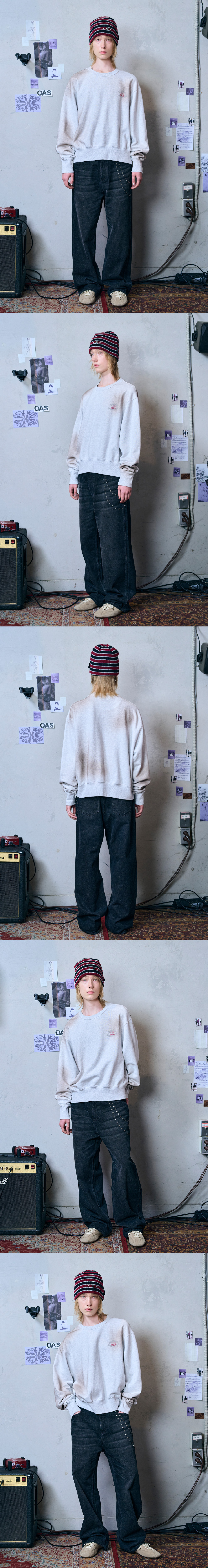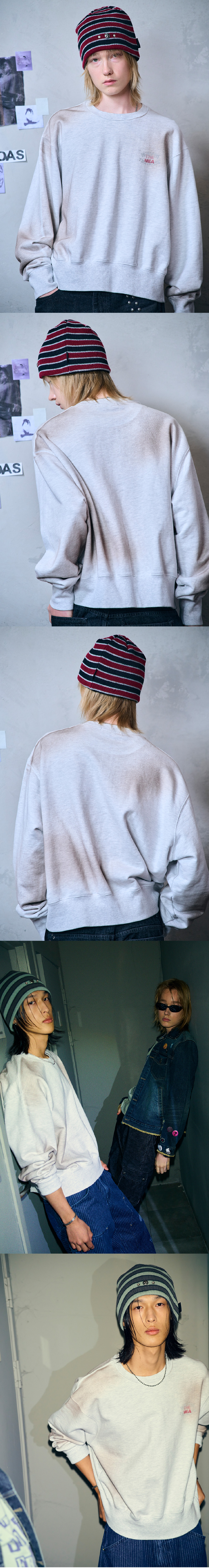메아 빈티지 워시드 립 스웻셔츠 멜란지 그레이