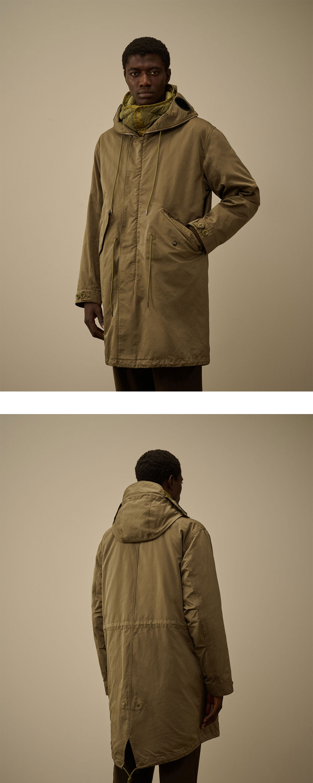 견고하면서도 부드러운 C.P. 컴퍼니 마이크로 케이 익스플로러 피시테일 파카 엘름우드 그린입니다. - 마이크로 케이(폴리에스터/나일론 마이크로파이버) 소재로 제작된 올웨더용 피시테일 파카 - 부드럽고 내구성이 뛰어나며 다양한 기후 조건에 적합 - 조절 가능한 익스플로러 후드와 플랩 스냅 여밈이 있는 히든 풀 지퍼 클로저 - 사이드 플랩 스냅 포켓으로 실용성 강화 - 허리 드로스트링과 버튼 커프스로 맞춤형 실루엣 연출 가능 - 뒷부분은 피시테일 헴 디자인으로 활동성과 스타일을 동시에 제공 - 탈부착 가능한 다운 라이닝 후드로 보온성 조절 가능 - 가먼트 다잉 및 발수(Anti-drop) 가공 처리 - 레귤러 핏