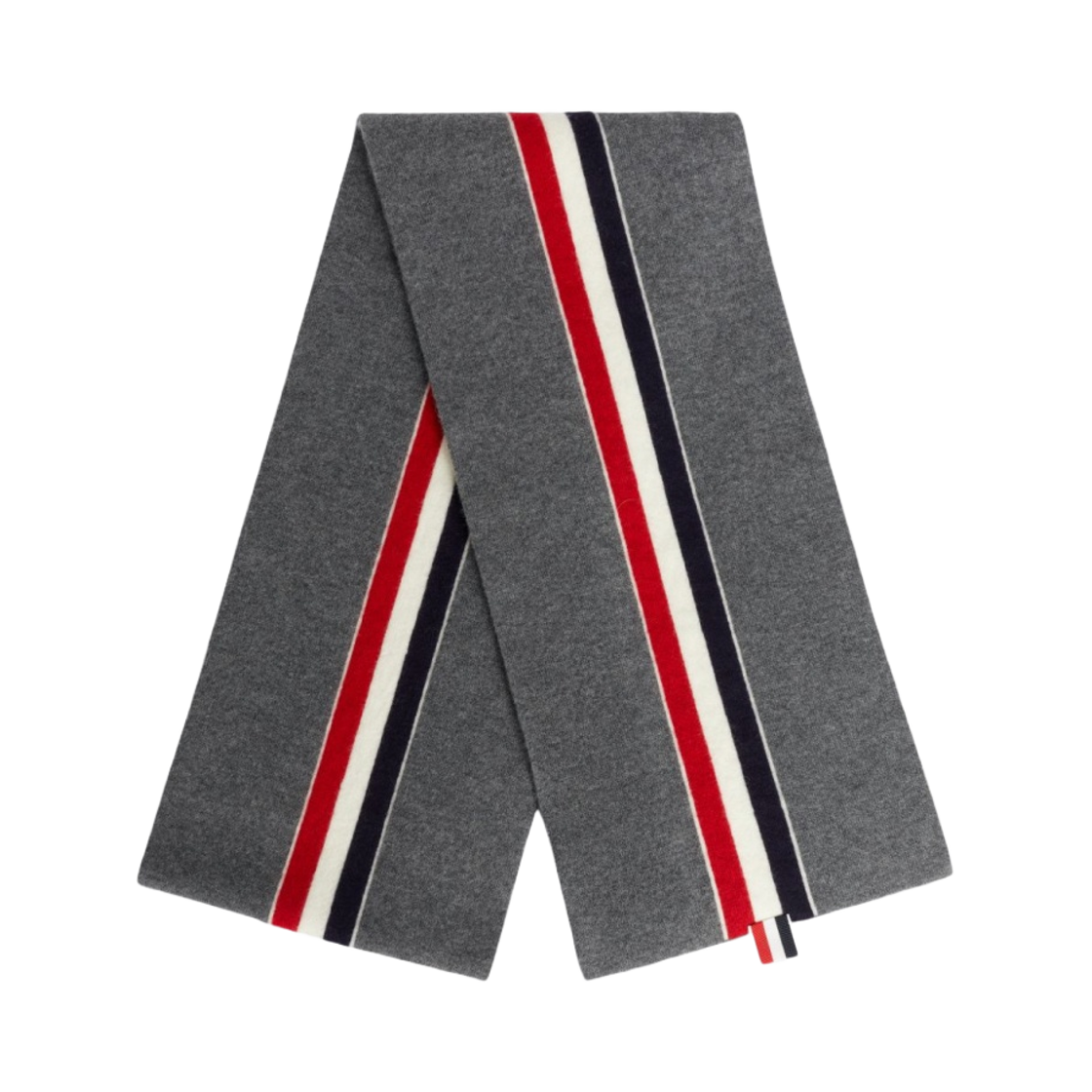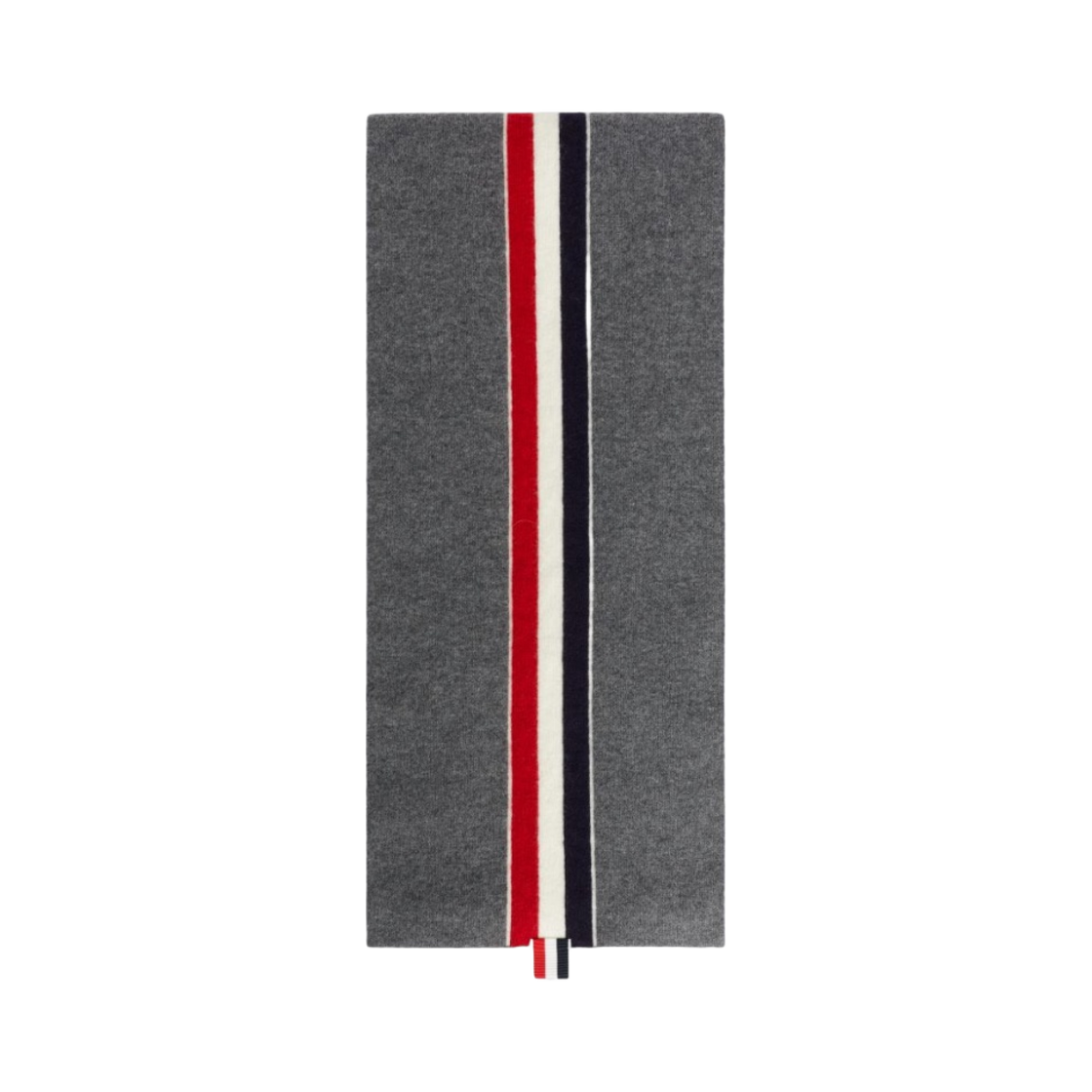 Thom Browne Jersey Stitch Superfine Merino Wool Intarsia Stripe Scarf Medium Grey