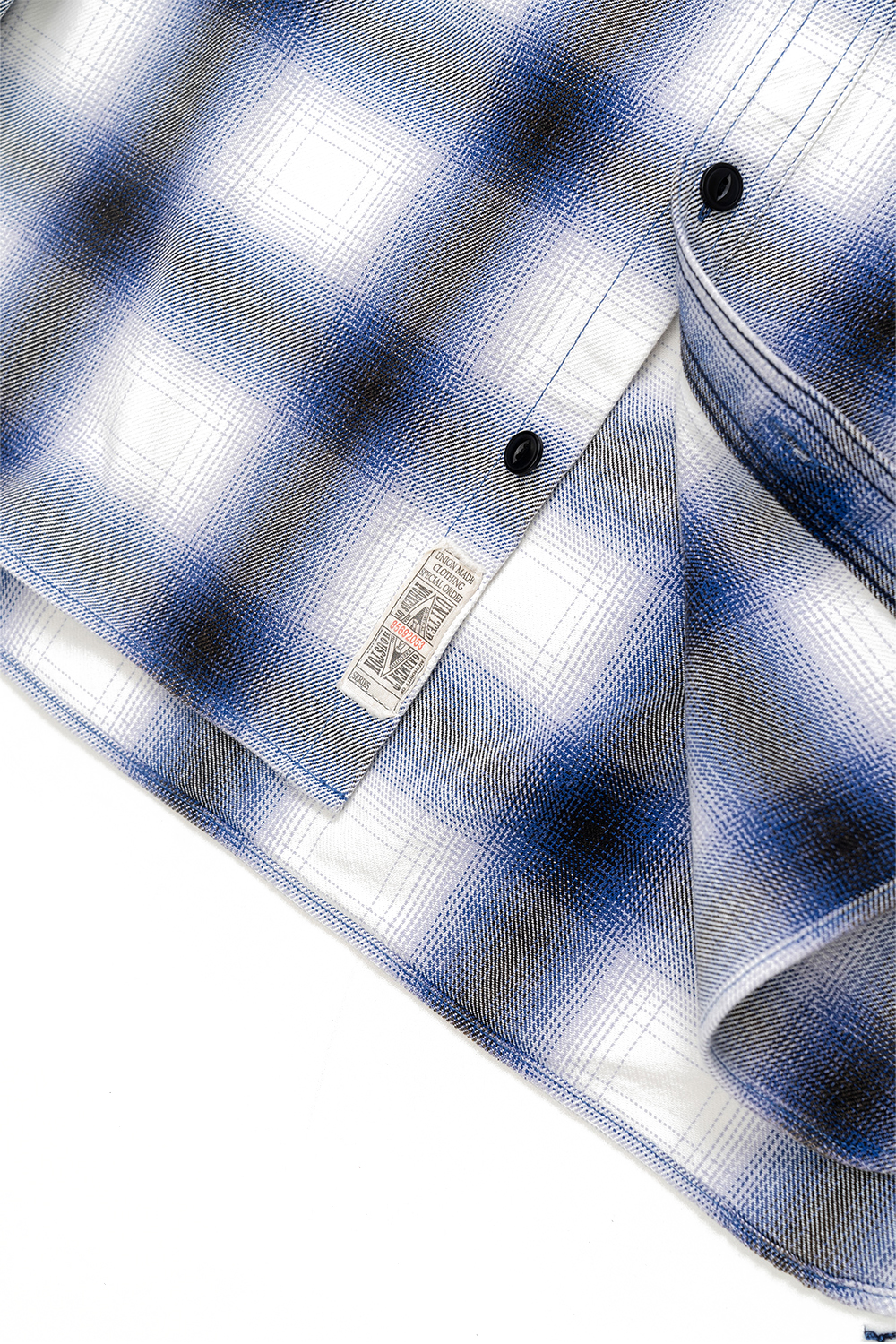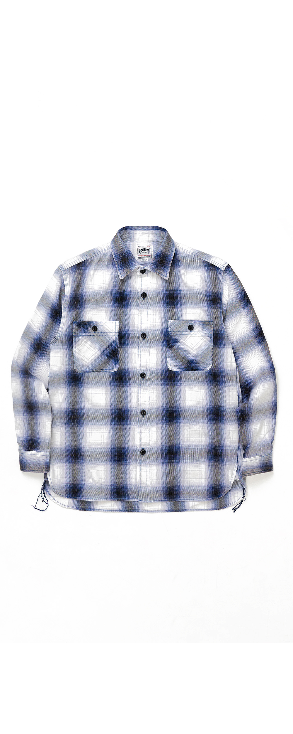 Houston Japan 41252VW Vintage Ombre Check Viyella Shirt - Blue 가을/겨울 시즌을 위한 클래식한 휴스턴 재팬 비옐라 셔츠입니다. 옴브레 체크의 빈티지 가공 버전이며, 경년 변화를 즐길 수 있는 상품입니다. 굵은 실을 짜내어 묵직한 비옐라 원단으로 제작한 것이 특징입니다. 트리플 니들 스티칭, 루프 밑단, 유니언 티켓 등 빈티지풍 디테일이 특징입니다. * Cotton 100% * 빛에 의한 제품의 색감 차이가 존재 할 수 있습니다. * Made in China