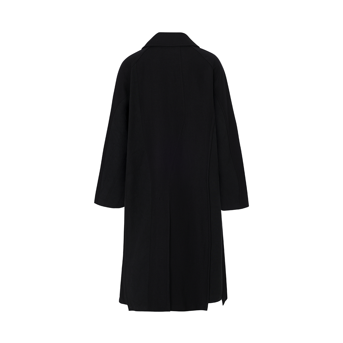 - SONGZIO 컬렉션 어시메트릭 컷 아웃 코트 - 조직감이 있는 울 린넨 패브릭과 단단한 코튼 패브릭 - ASYMMETRIC 컷아웃 디자인 - 라펠 SIGNATURE RING - 전면 커브드 라인과 후면 센터 벤트 - 오버사이즈 실루엣 FABRICATION MADE IN KOREA