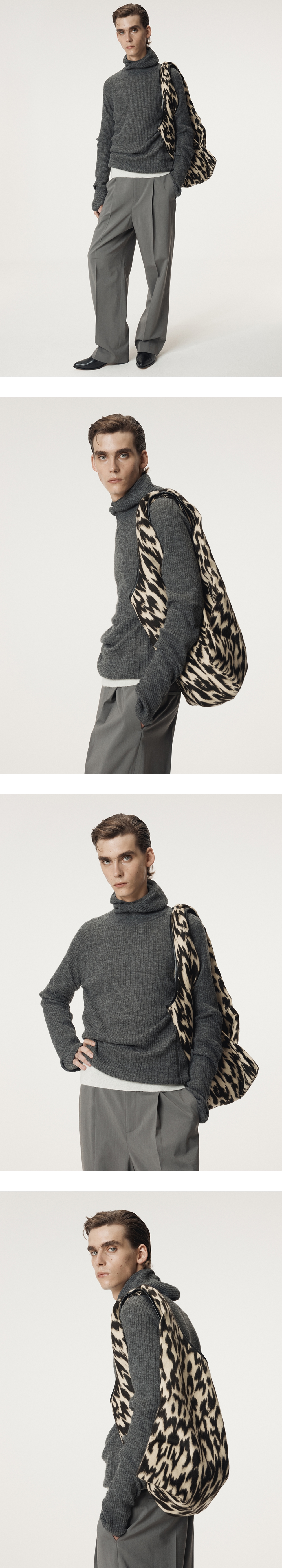 - 보온성이 뛰어난 니트 소재의 남성용 바라클라바 디자인 - 어깨라인에 시그니처 조직 디테일 - 실용적인 후드형 디자인 - 소매 핑거 홀 디테일 포인트