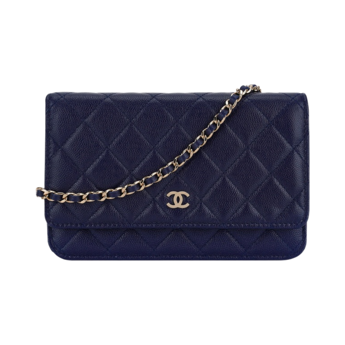 샤넬 클래식 체인 지갑 그레인드 카프스킨 & 골드 메탈 네이비 블루