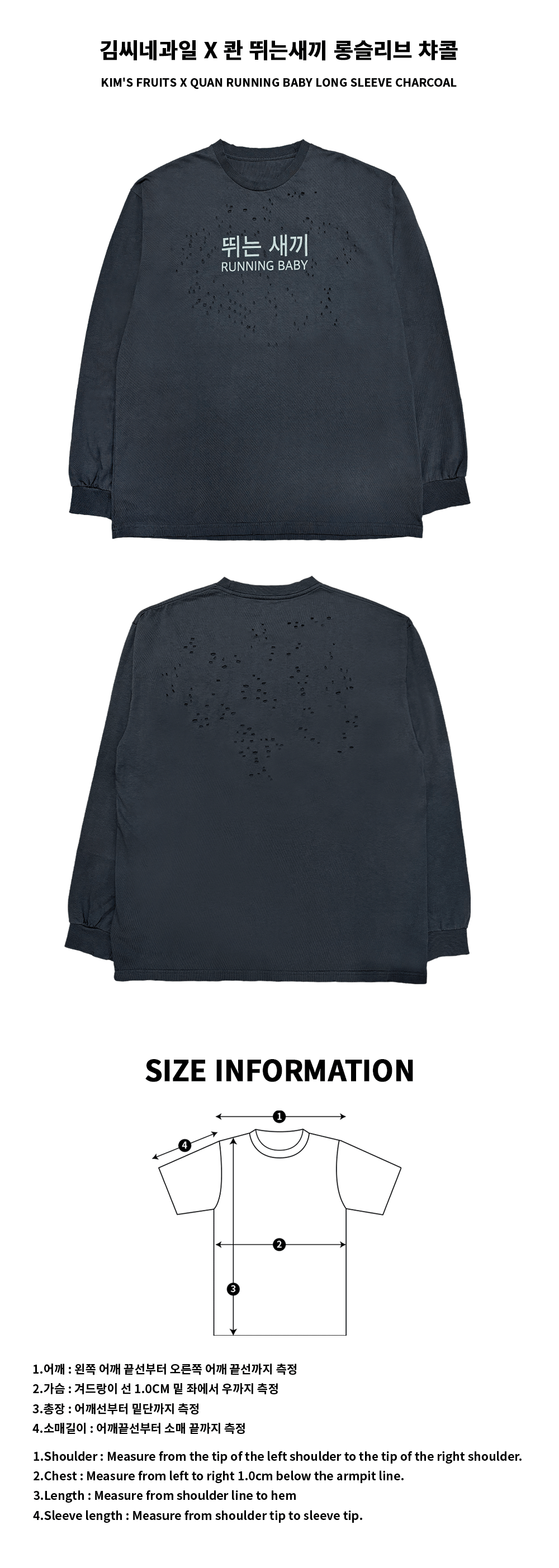 김씨네과일 X 콴 뛰는새끼 롱슬리브 챠콜