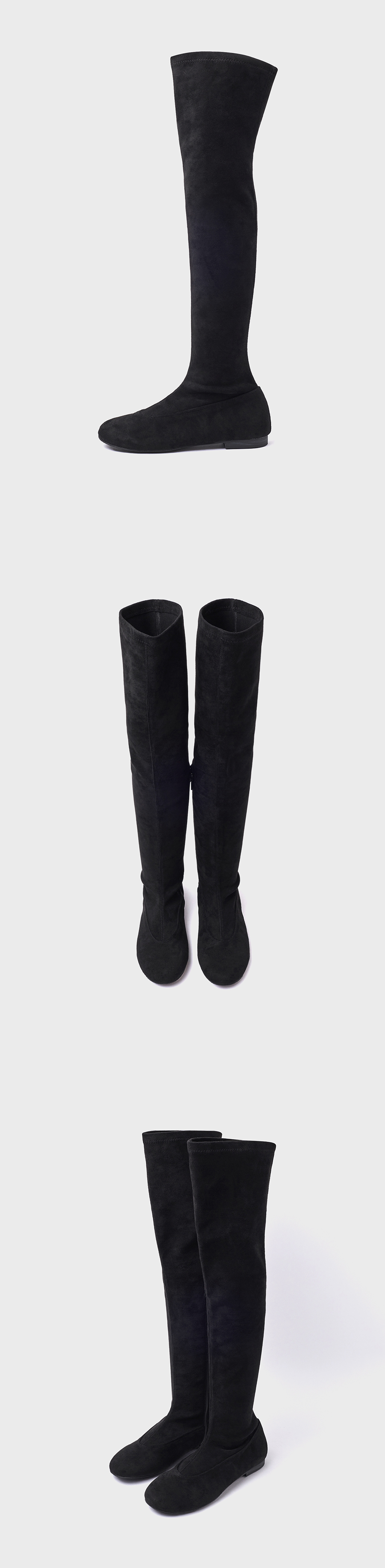 무드나잇 마사 실루엣 스판 니하이부츠 l 스웨이드블랙