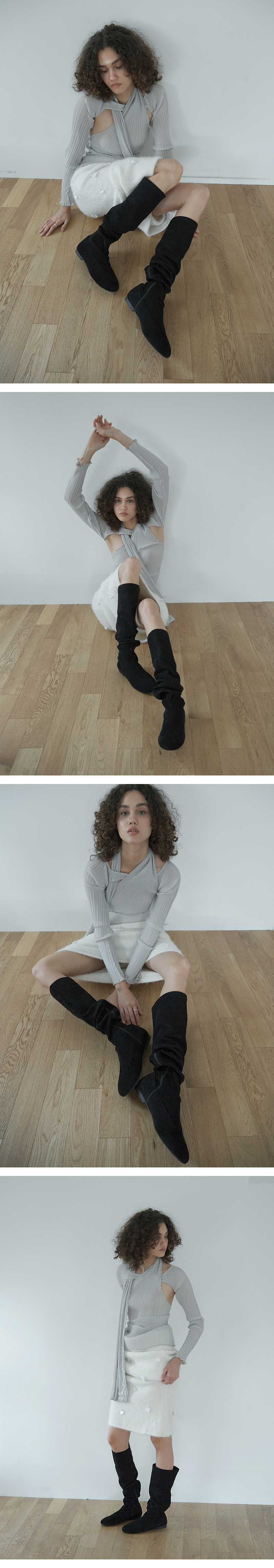 · 발목부터 무릎 위까지 부드럽게 핏되는 스판덱스 니하이 부츠 · 주름을 잡아 슬라우치 타입도 연출이 가능해 높은 활용도 · 깨끗한 실루엣에 라운드 쉐입으로 어디에나 어울리는 스테디 아이템 · 부담없는 플랫타입이지만 슬림한 시각효과를 부르는 실루엣