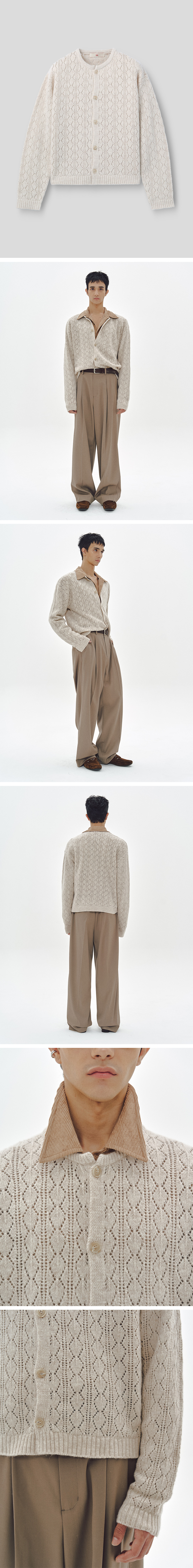 엠엠아이씨 캐시미어 크로쉐 가디건 베이지
