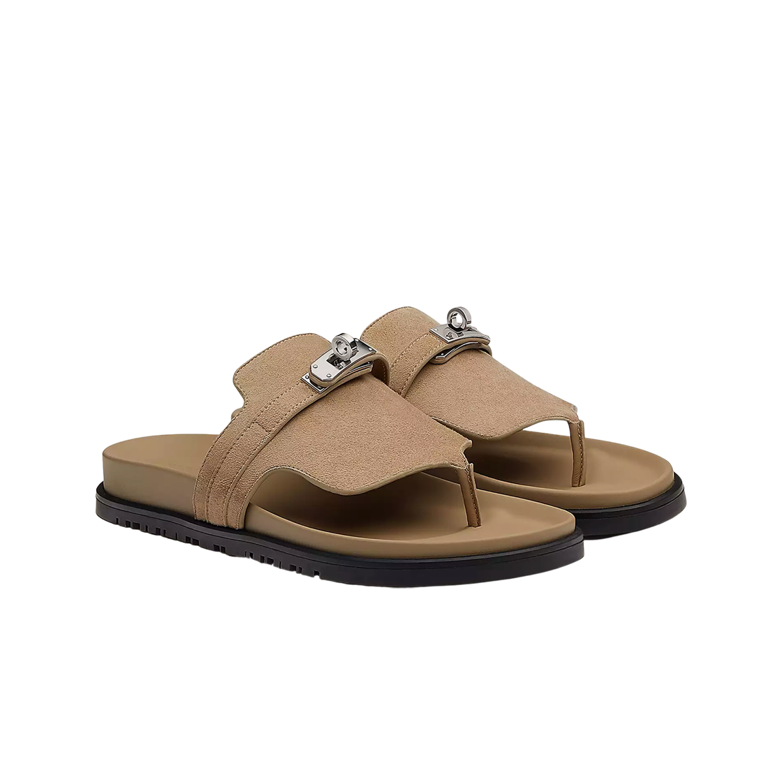 (W) Hermes Empire Sandal Suede Goatskin & Palladium Beige Sable