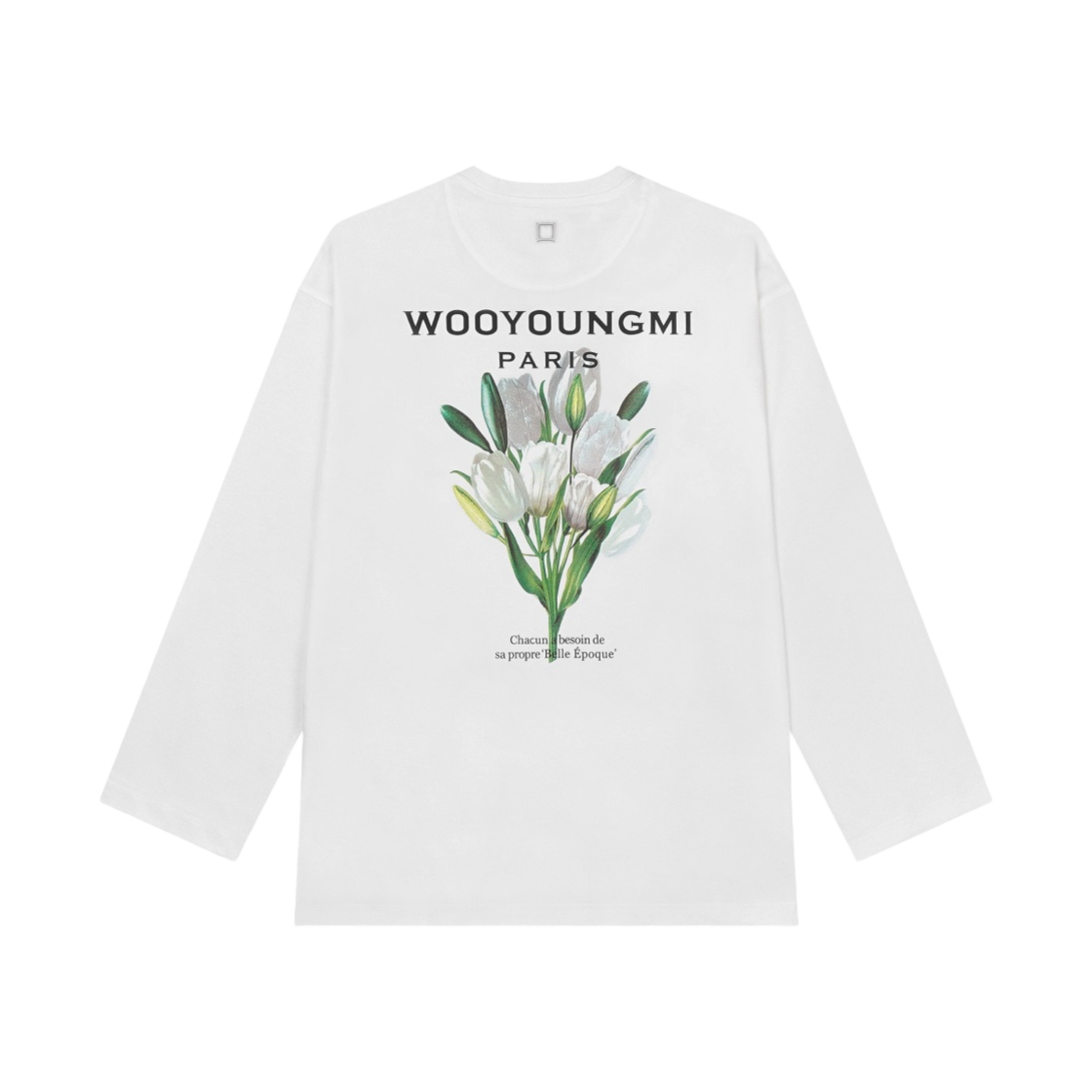 Wooyoungmi Flower Print Long Sleeve Back Logo T-Shirt White - 22SS