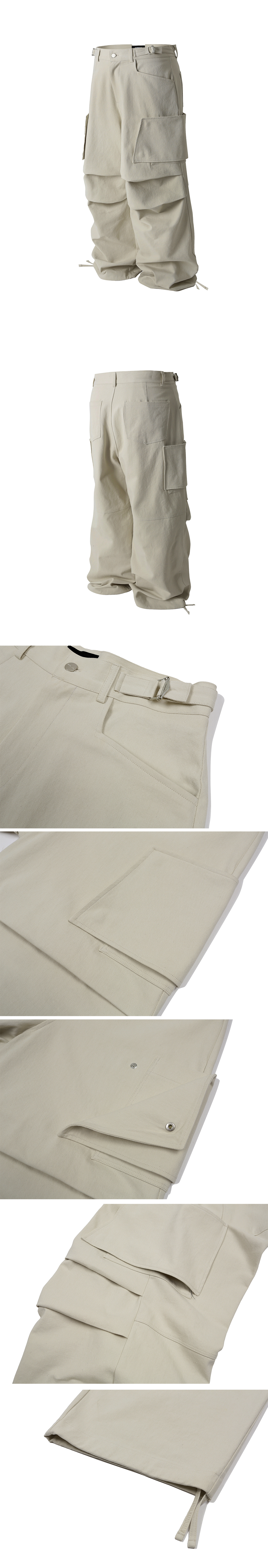 Fabric : Cotton 100% - 와이드 핏 - 10's 고밀도 트윌 - 바이오 워싱 - 디자인 포켓 - 시그니처 켄톤 - 파라슈트 디테일 - 허리 사이즈 조절 비조 - 밑단 조절 스트링 - 지퍼 및 스냅 YKK 社 • 제조국 : 대한민국 • 세탁 방법 : 찬물 세탁 권장, 건조기 사용 금지 Size Spec (CM) M : 허리 41, 허벅지 38, 밑위 38, 밑단 30, 엉덩이 57, 총장 113 L : 허리 44, 허벅지 40, 밑위 39, 밑단 31, 엉덩이 59, 총장 115