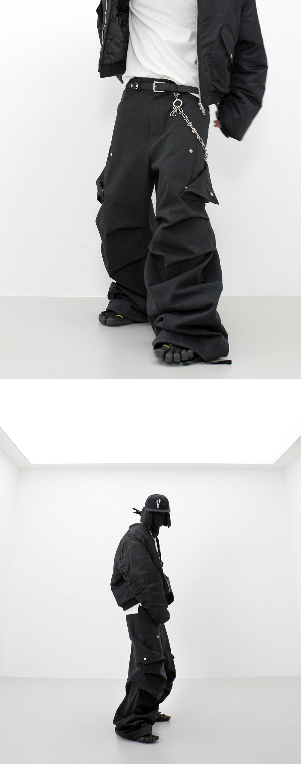 Fabric : Cotton 100% - 와이드 핏 - 10's 고밀도 트윌 - 바이오 워싱 - 디자인 포켓 - 시그니처 켄톤 - 파라슈트 디테일 - 허리 사이즈 조절 비조 - 밑단 조절 스트링 - 지퍼 및 스냅 YKK 社 • 제조국 : 대한민국 • 세탁 방법 : 찬물 세탁 권장, 건조기 사용 금지 Size Spec (CM) M : 허리 41, 허벅지 38, 밑위 38, 밑단 30, 엉덩이 57, 총장 113 L : 허리 44, 허벅지 40, 밑위 39, 밑단 31, 엉덩이 59, 총장 115