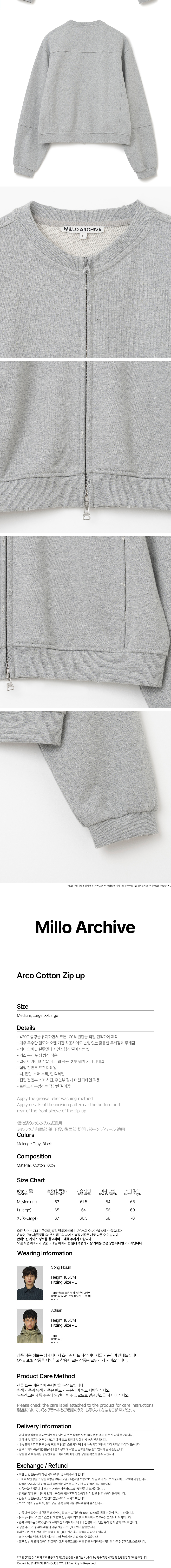 밀로 아카이브 아르코 코튼 집업 멜란지 그레이