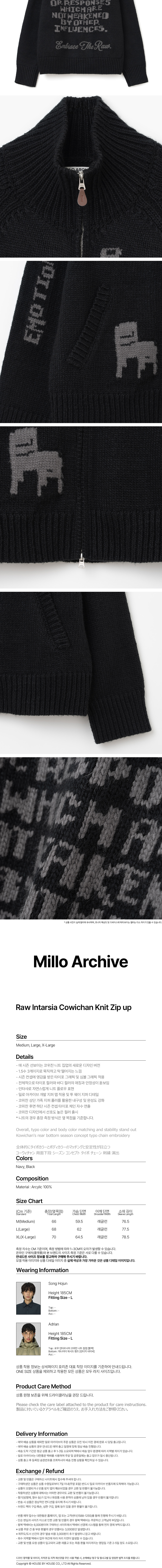 밀로 아카이브 로우 인타르시아 코위찬 니트 집업 블랙