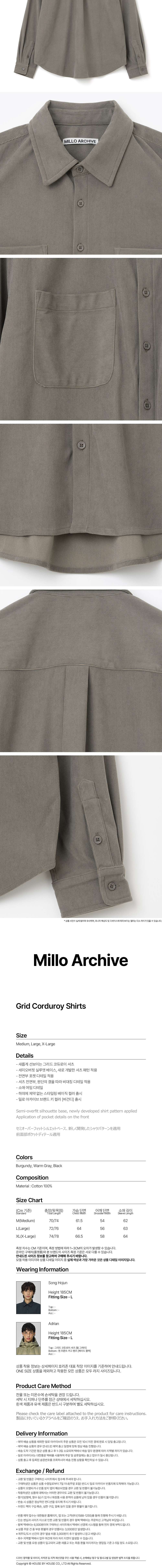 밀로 아카이브 그리드 코듀로이 셔츠 웜 그레이