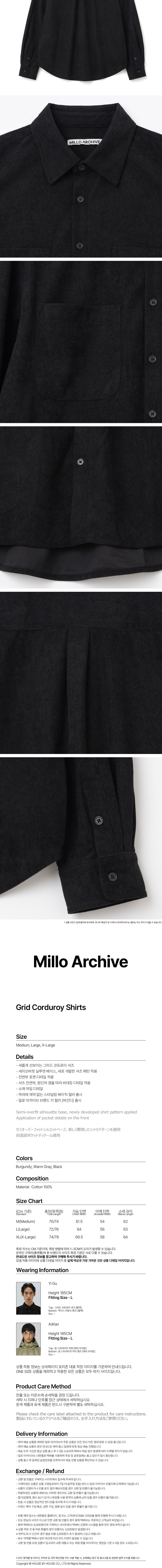 밀로 아카이브 그리드 코듀로이 셔츠 블랙