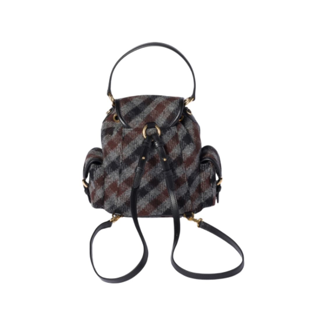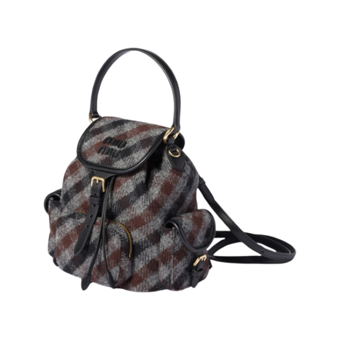 Miu Miu Plaid and Leather Backpack Slate Grey Cocoa Brown