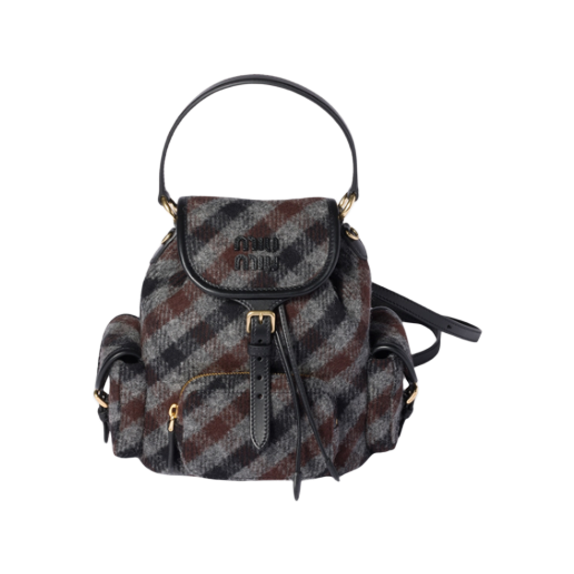 미우 미우 플래드 레더 백팩 슬레이트 그레이 코코아 브라운