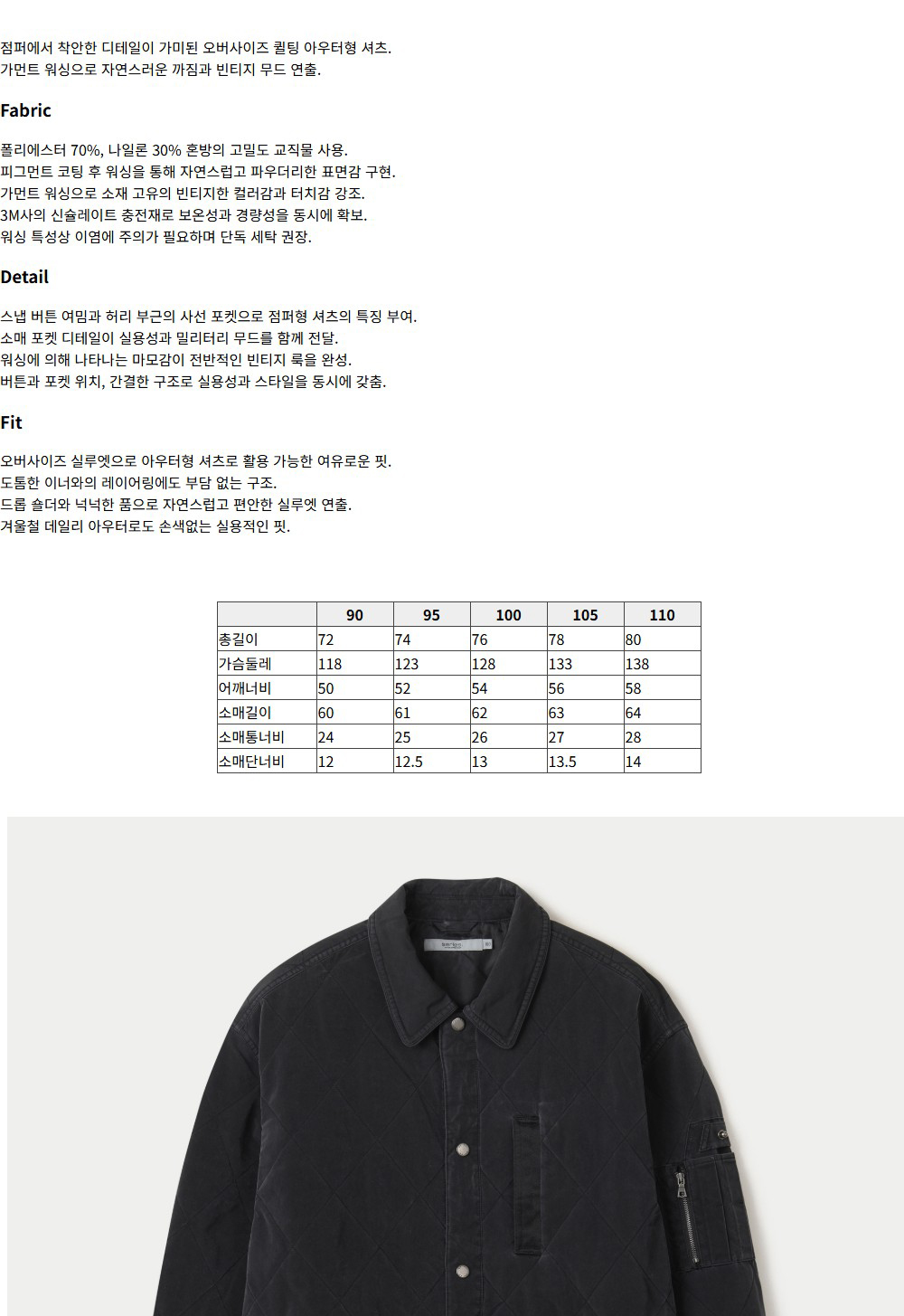시리즈 피그코팅 퀼팅 아우터셔츠 블랙