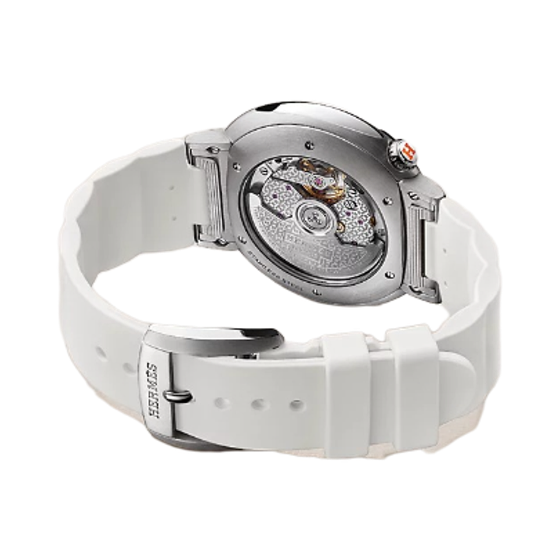 Hermes Cut Watch Large Blanc Rubber Strap & Satin Brushed Steel