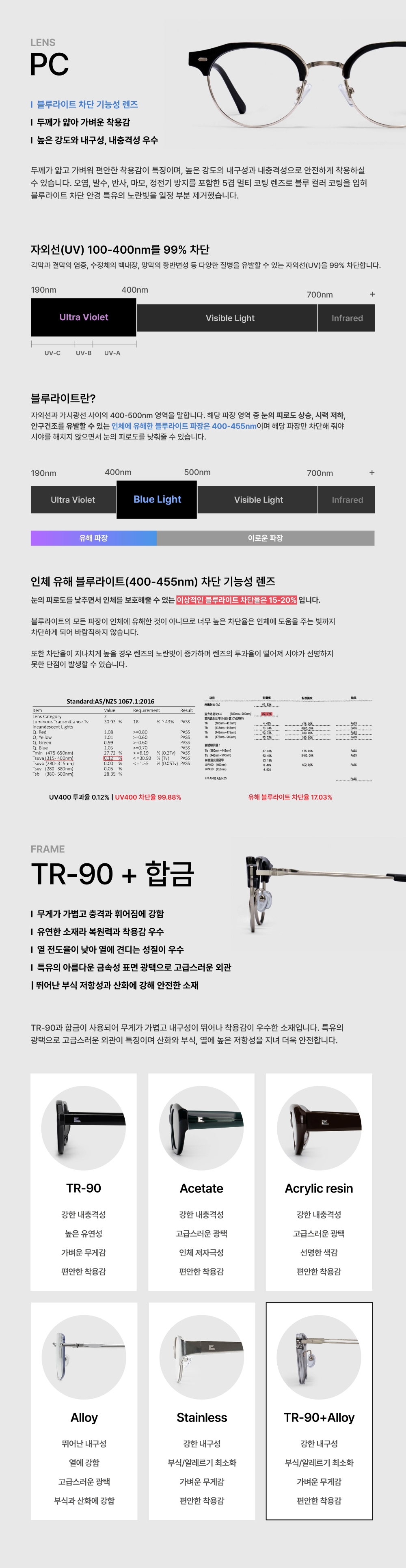 도수가 없는 아이웨어(안경테/선글라스 포함)를 취급하고 있습니다. 도수 렌즈가 필요하신 분들은 제품 수령 후 가까운 안경점 방문 부탁 드립니다. 남녀 공용으로 제작되었지만 개개인 얼굴형에 따라 피팅감은 개인차가 있어, 상품 수령 후 가까운 안경점 방문하시어 얼굴형에 맞게 피팅 후 착용 권장 드립니다.