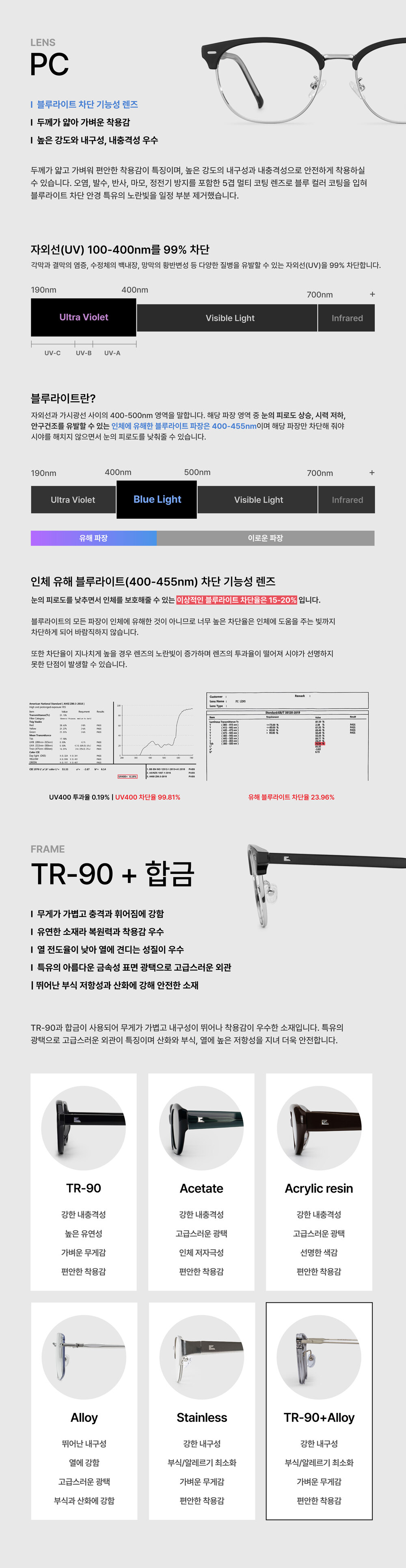 도수가 없는 아이웨어(안경테/선글라스 포함)를 취급하고 있습니다. 도수 렌즈가 필요하신 분들은 제품 수령 후 가까운 안경점 방문 부탁 드립니다. 남녀 공용으로 제작되었지만 개개인 얼굴형에 따라 피팅감은 개인차가 있어, 상품 수령 후 가까운 안경점 방문하시어 얼굴형에 맞게 피팅 후 착용 권장 드립니다.