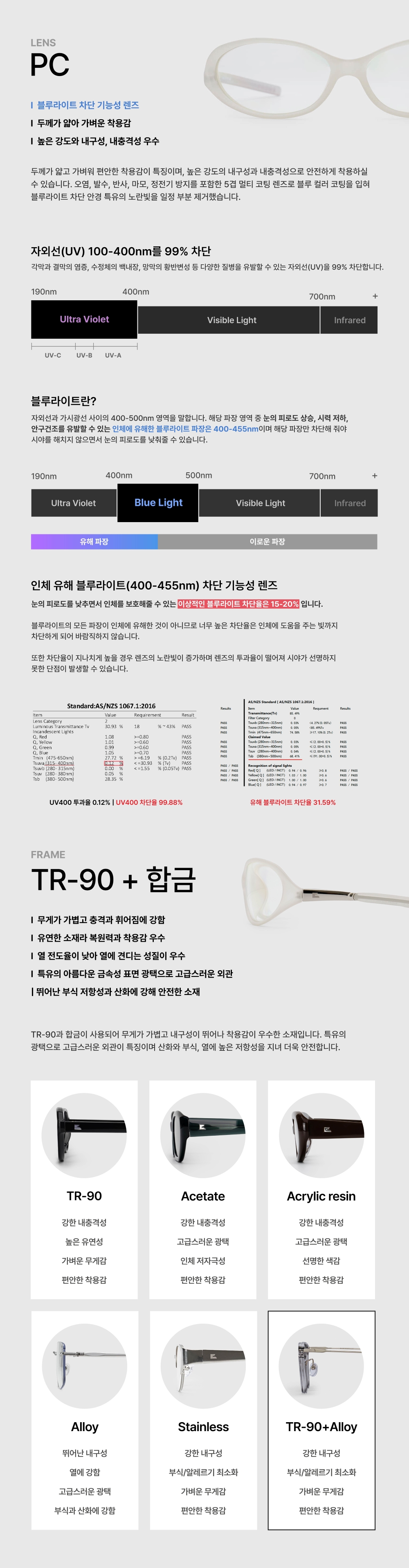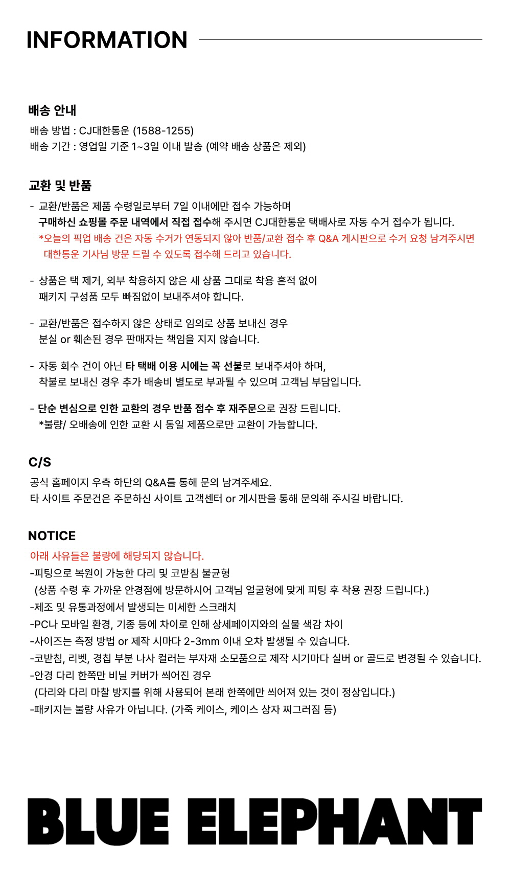 도수가 없는 아이웨어(안경테/선글라스 포함)를 취급하고 있습니다. 도수 렌즈가 필요하신 분들은 제품 수령 후 가까운 안경점 방문 부탁 드립니다. 남녀 공용으로 제작되었지만 개개인 얼굴형에 따라 피팅감은 개인차가 있어, 상품 수령 후 가까운 안경점 방문하시어 얼굴형에 맞게 피팅 후 착용 권장 드립니다.