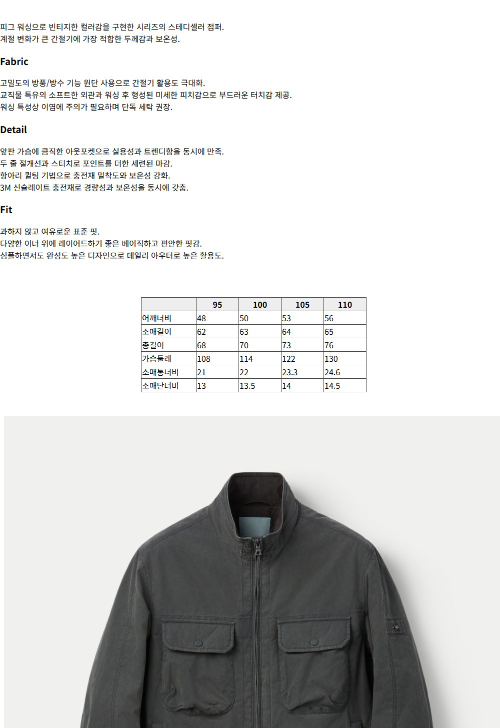 시리즈 피그워싱 면패딩 점퍼 그레이