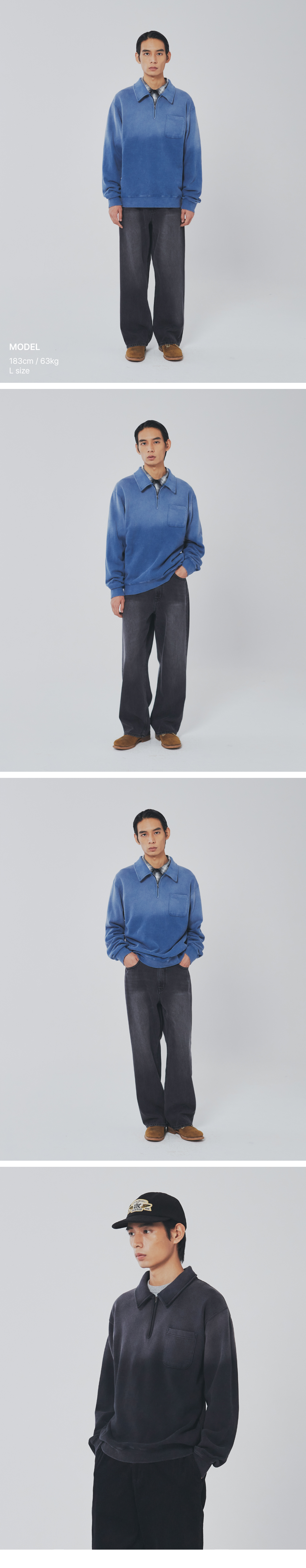 유니폼 브릿지 하프 집업 포켓 스웨트셔츠 블루 워시드