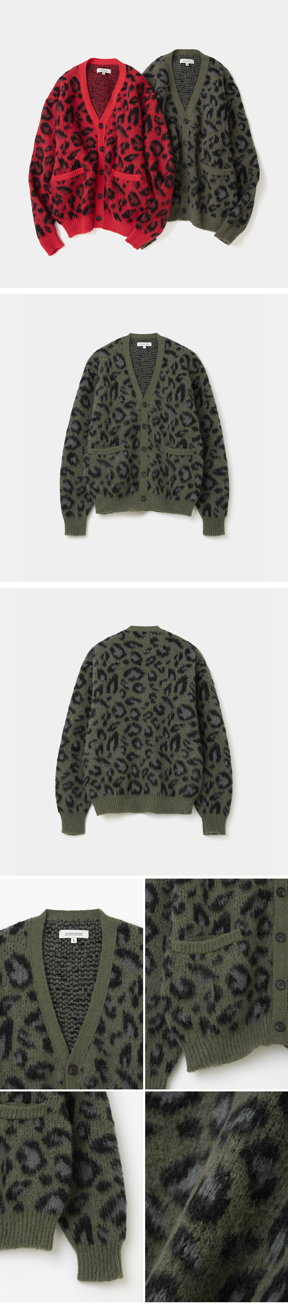 유니폼 브릿지 레오파드 브넥 가디건 올리브