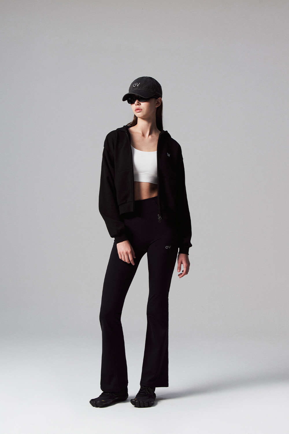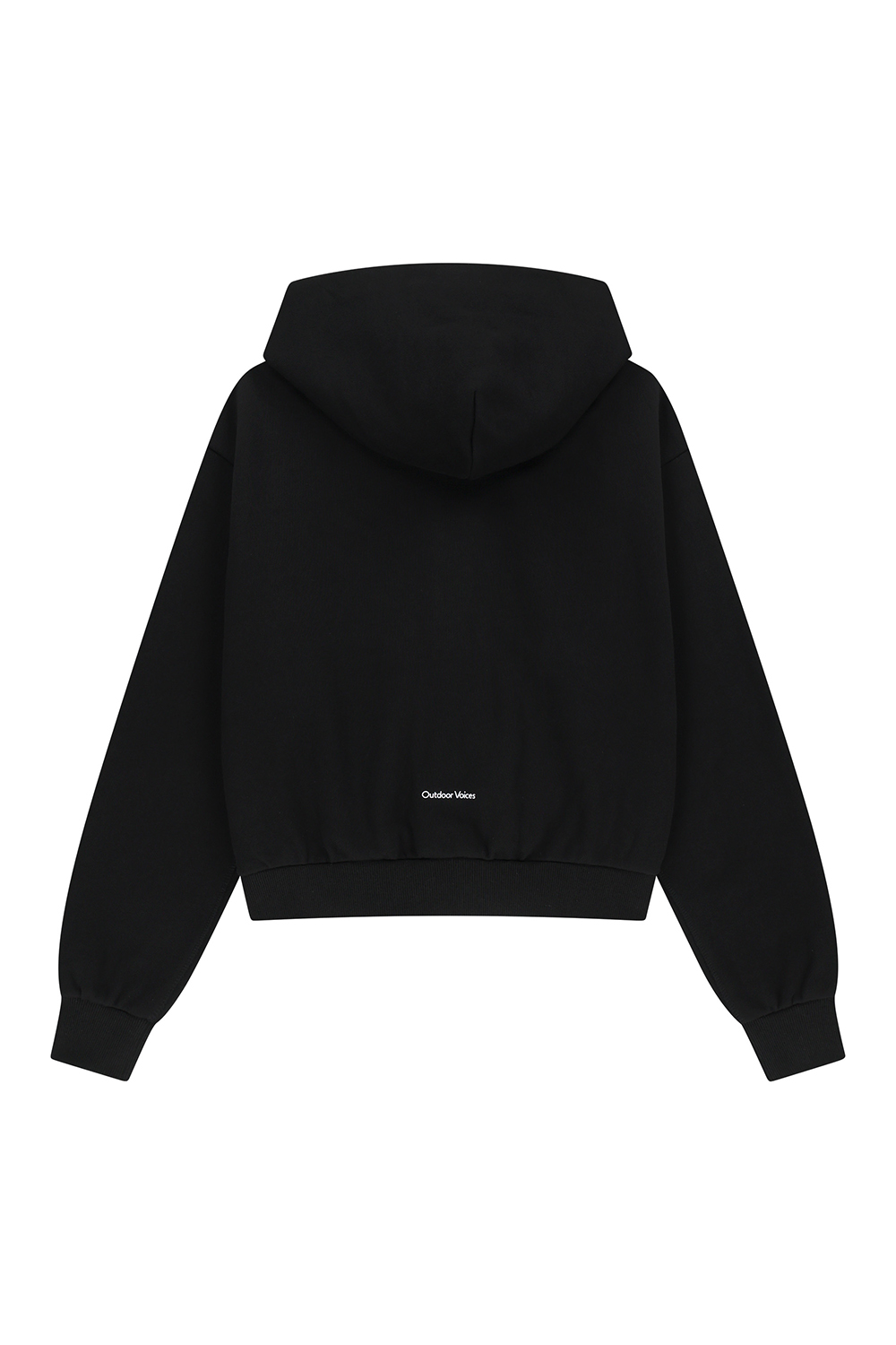 아웃도어보이스 로고 크롭 집 업 스웻 후디 블랙