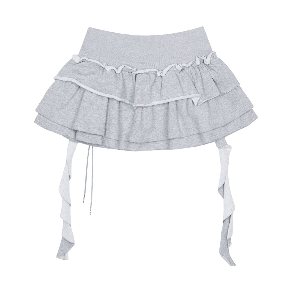 DESIGN SUMMARY ⦁ 코튼 스웻 원단으로 제작된 3단 티어드 미니 스커트 ⦁ 허리 밴딩 안쪽에 이밴드 처리로 착용 시 흘러내림 방지 ⦁ 첫 번째 스커트 레이어에 아일렛 레이스업 디테일과 측면의 시그니처 러플 마무리 ⦁ 단독 착용 또는 팬츠와 다양한 레이어링이 가능한 디자인 FABRIC 100% COTTON CARE ⦁ DRY CLEAN 권장 SIZE ONE -WAIST : 33cm -HIP : 45.5cm -LENGTH : 31cm MODEL MODEL 1 : 175cm MODEL 2 : 170cm