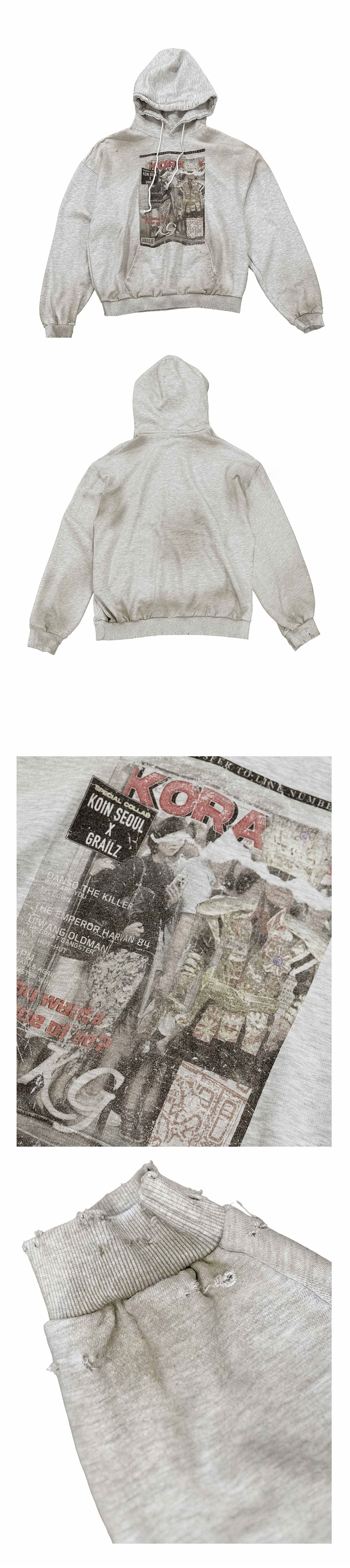 Grailz X Koin Seoul Magazine Dirty Hoodie Melange Gray