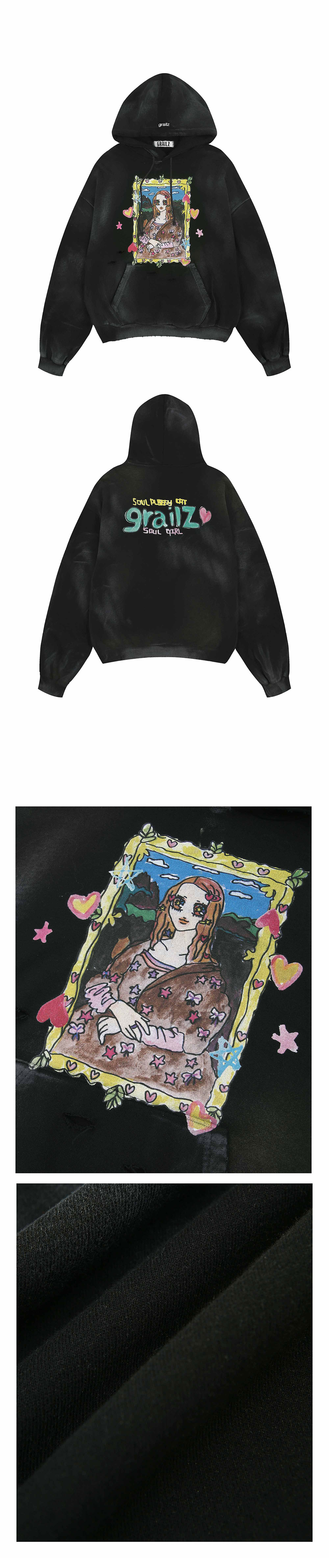 그레일즈 소울푸시캣 x 그레일즈 패러디 워시드 후디 블랙