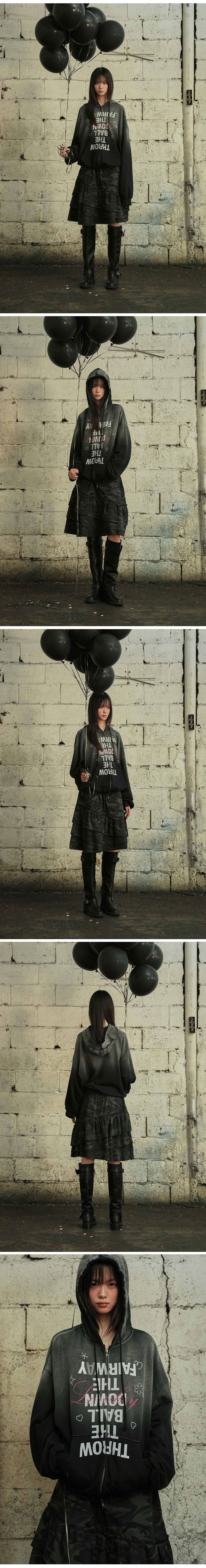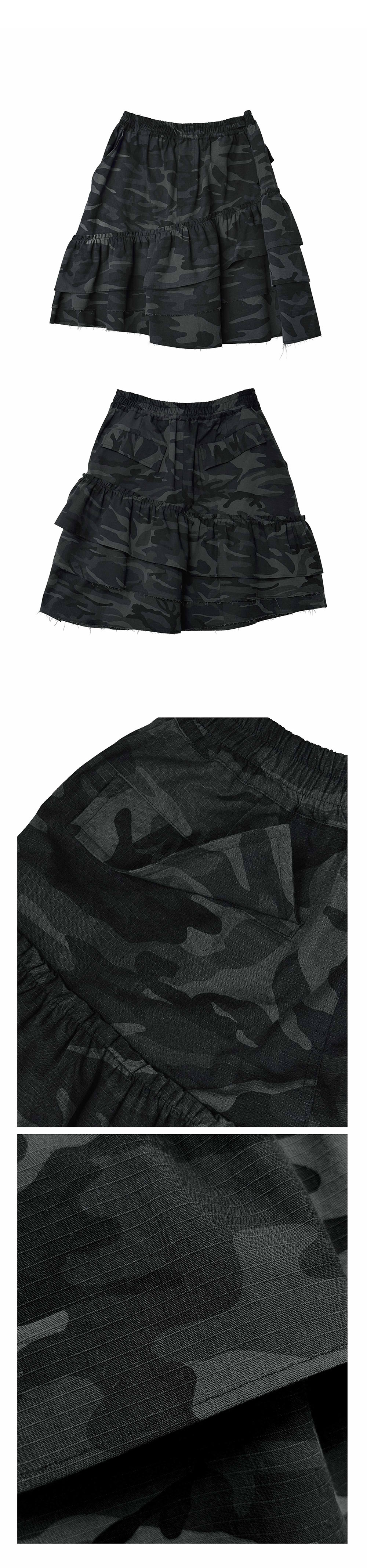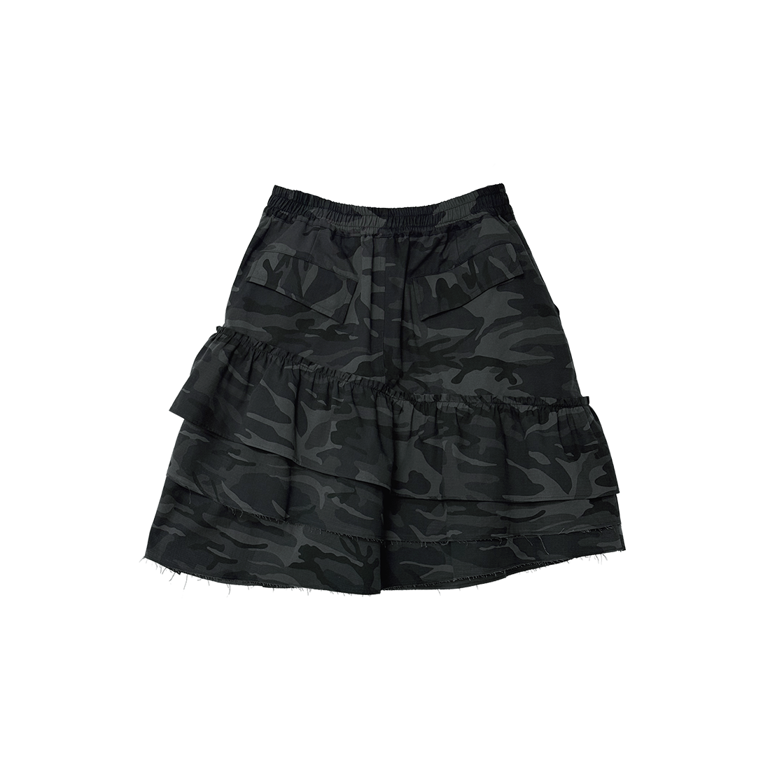 그레일즈 러플 레이어드 스커트 블랙 카모