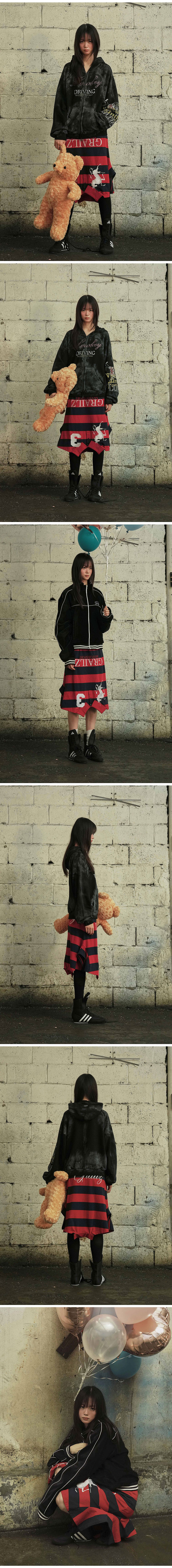 그레일즈 업사이드 다운 피케이 티셔츠 스커트 레드