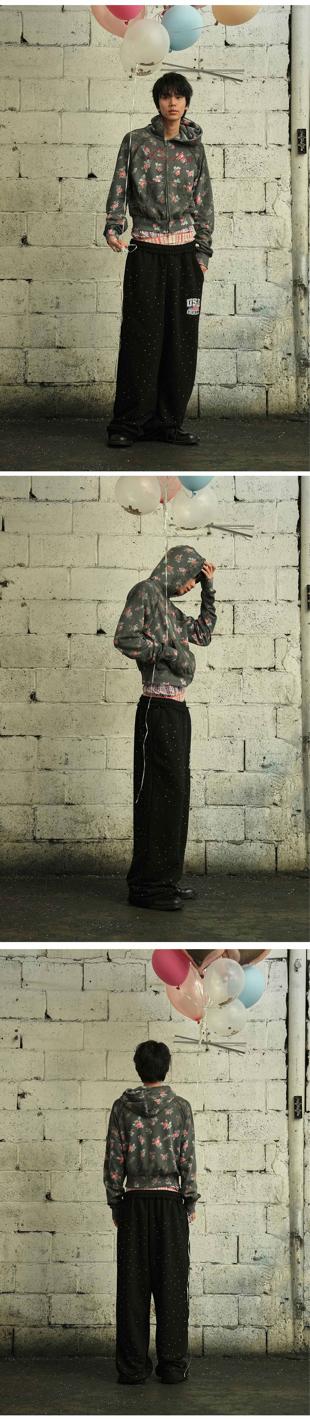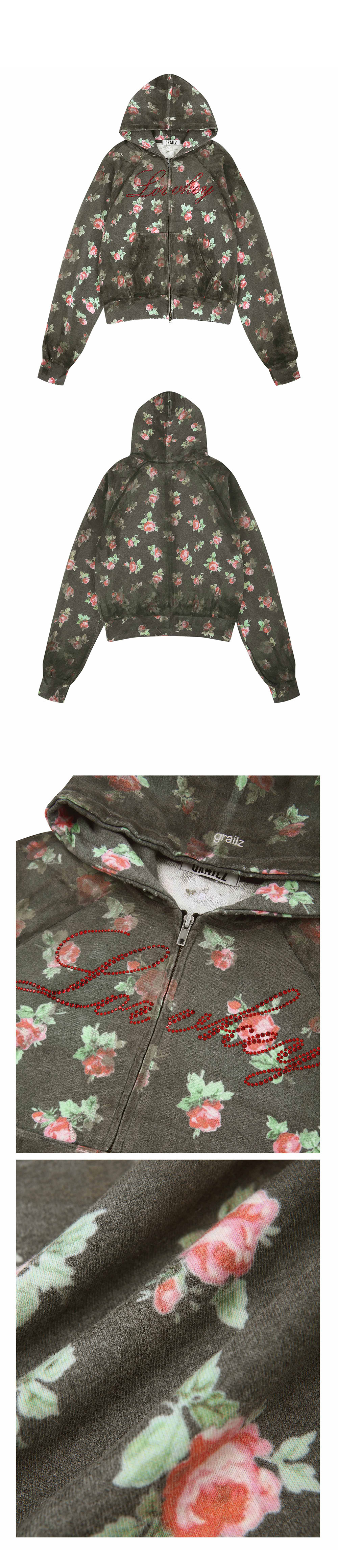 Grailz Flower Dirty Zip Hoodie Charcoal