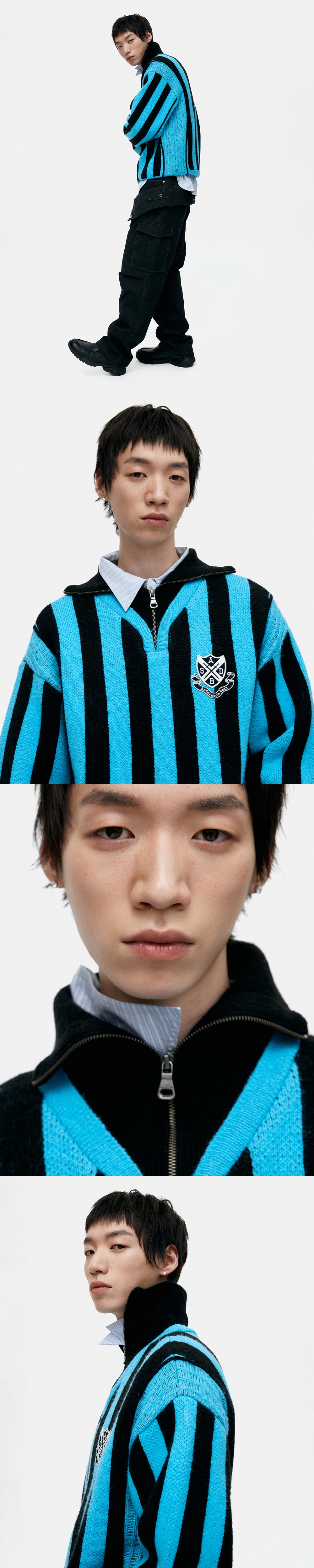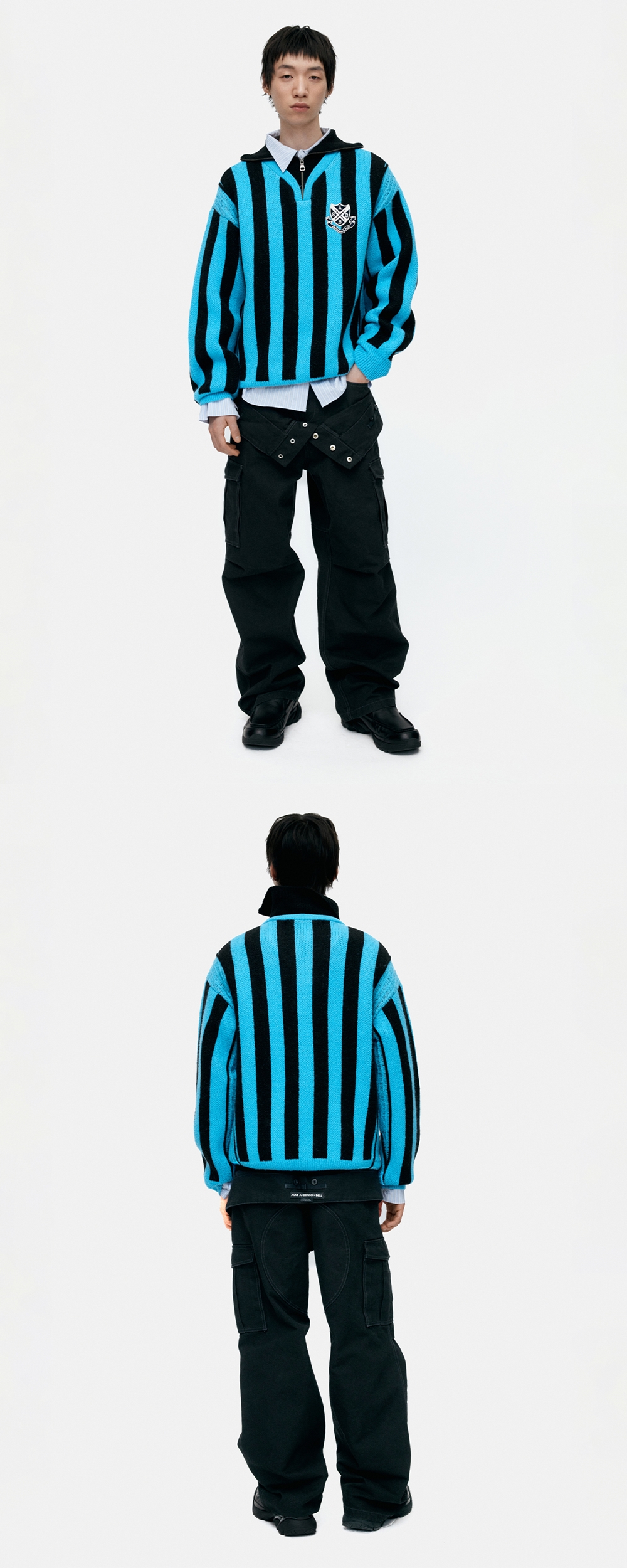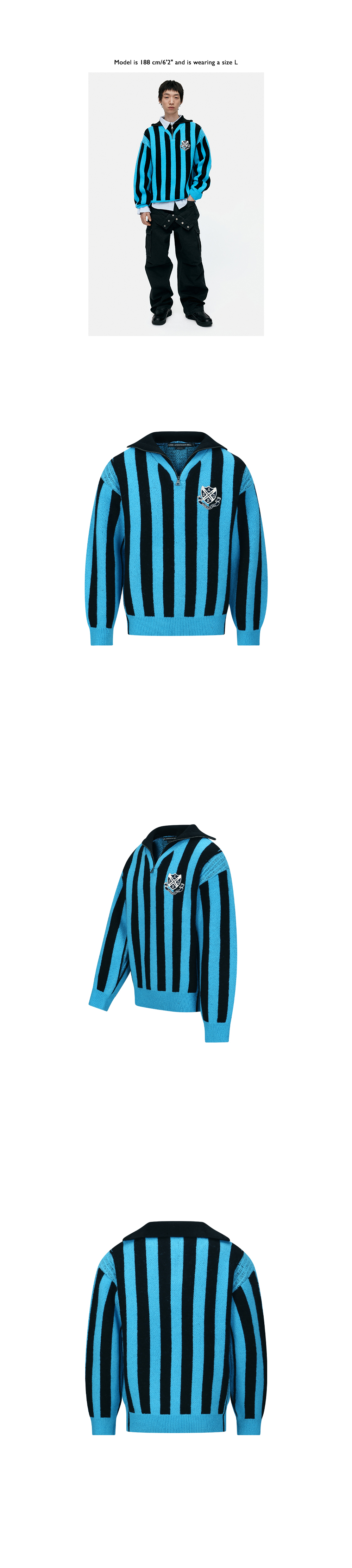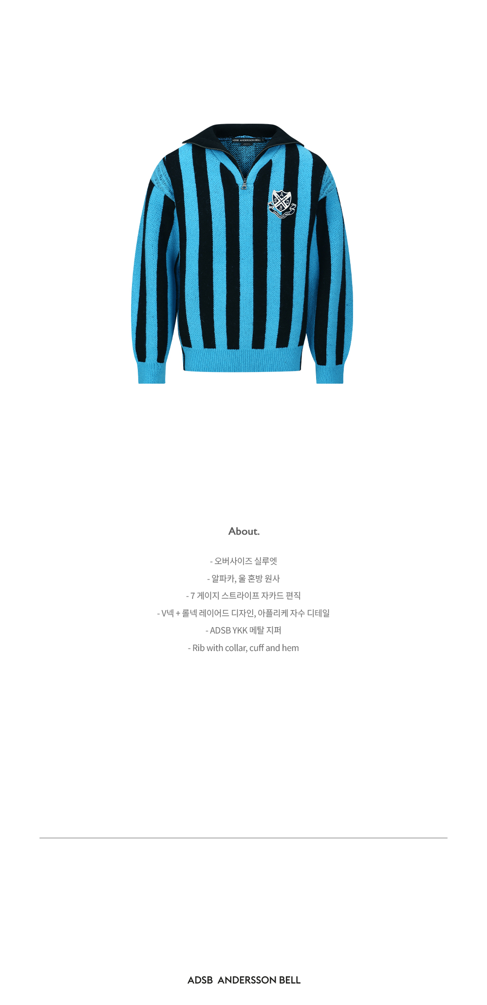 ADSB 앤더슨벨 하프 집업 엠블럼 스웨터 블루