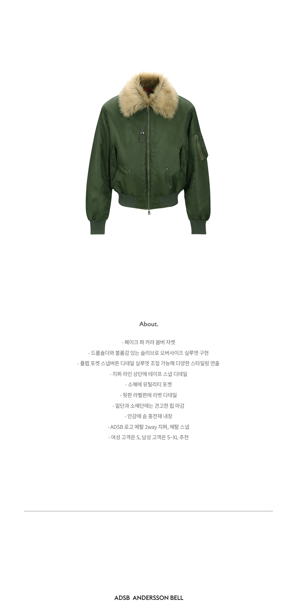 ADSB 앤더슨벨 퍼 칼라 MA-1 봄버 카키