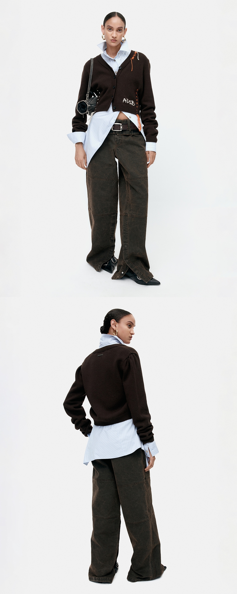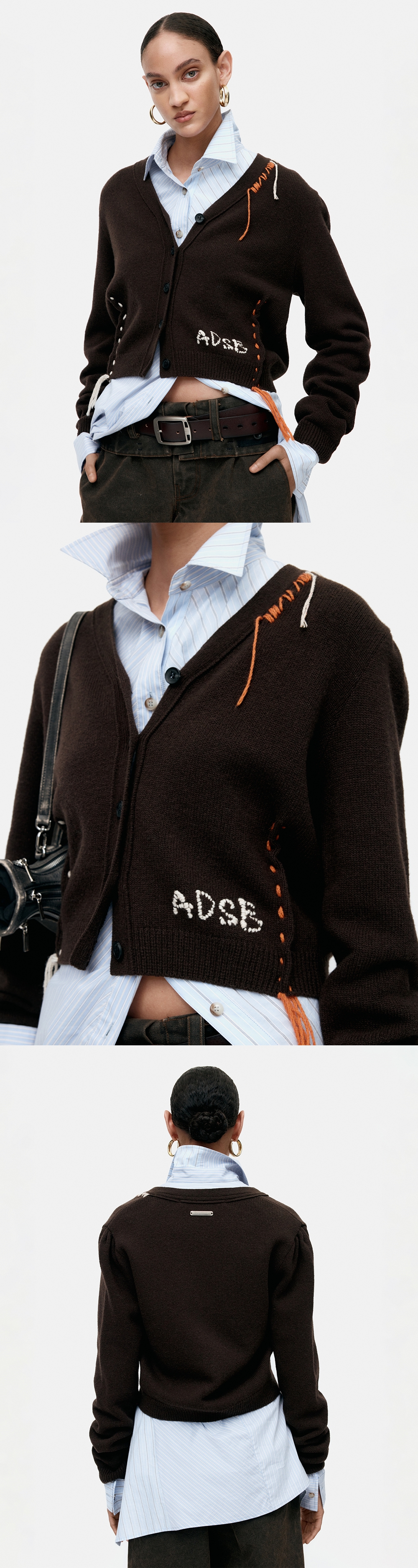 ADSB 앤더슨벨 모건 핸드 스티치 니트 가디건 브라운