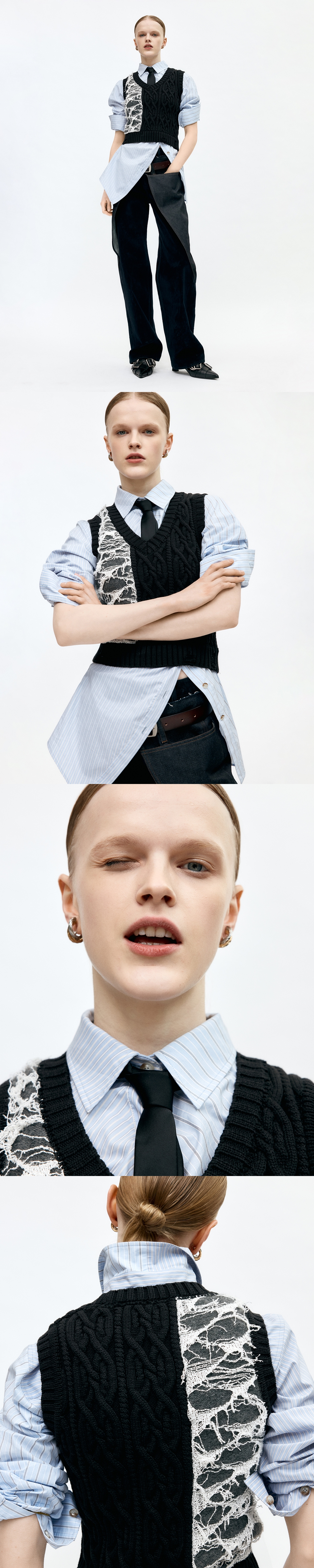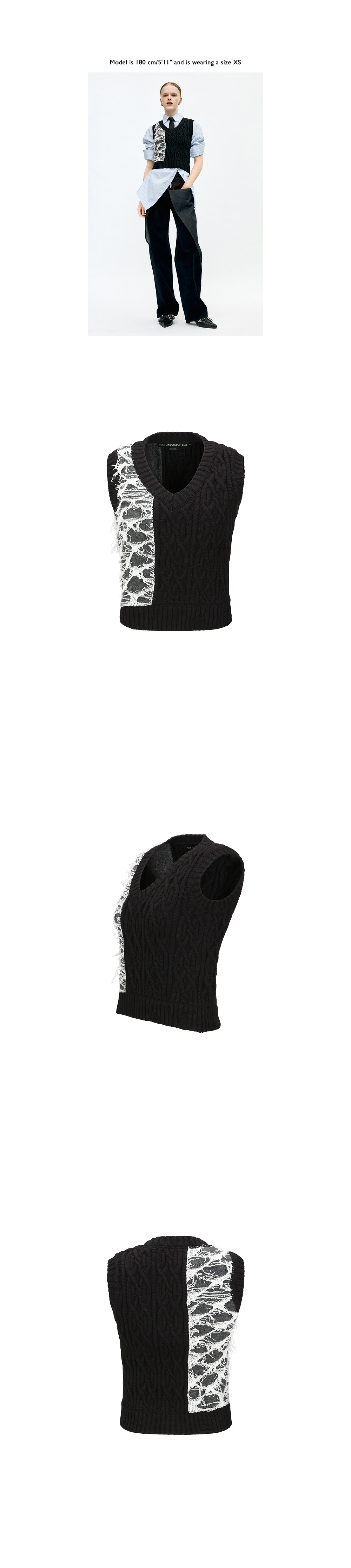 ADSB 앤더슨벨 부클 케이블 패치워크 니트 베스트 차콜