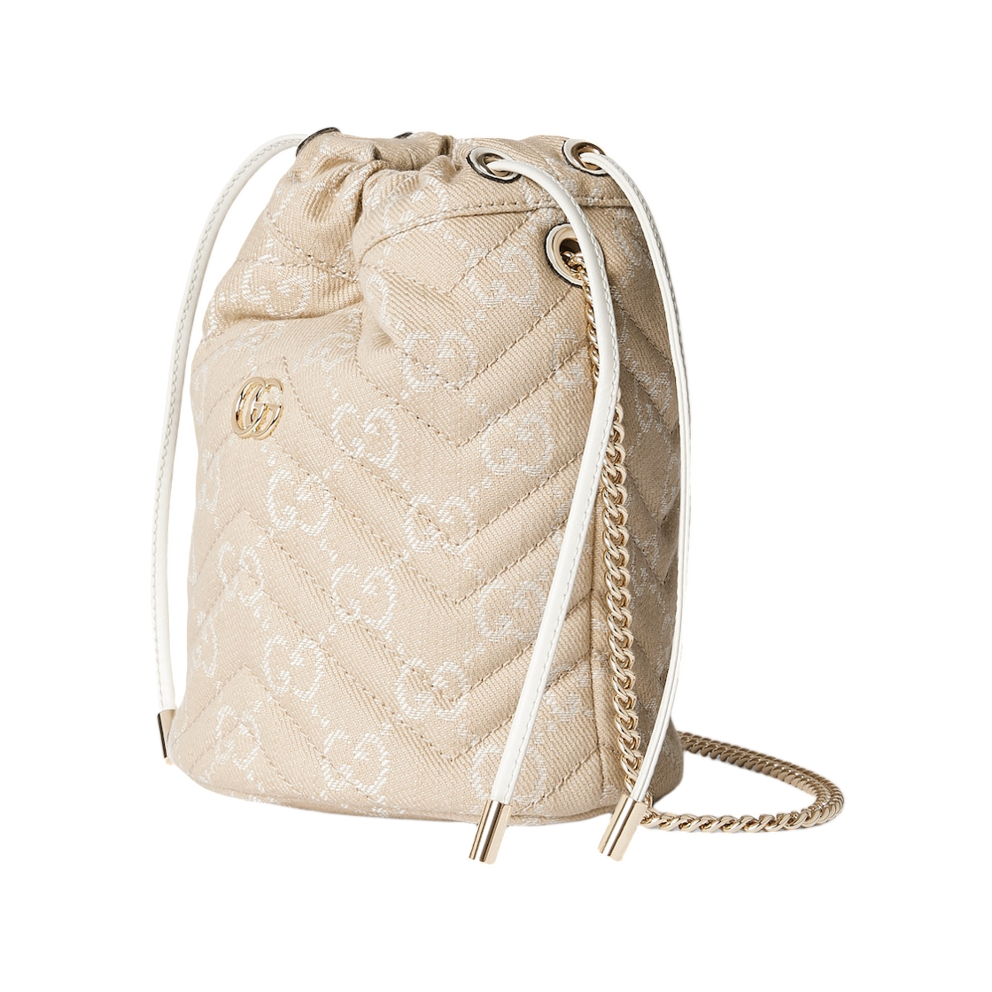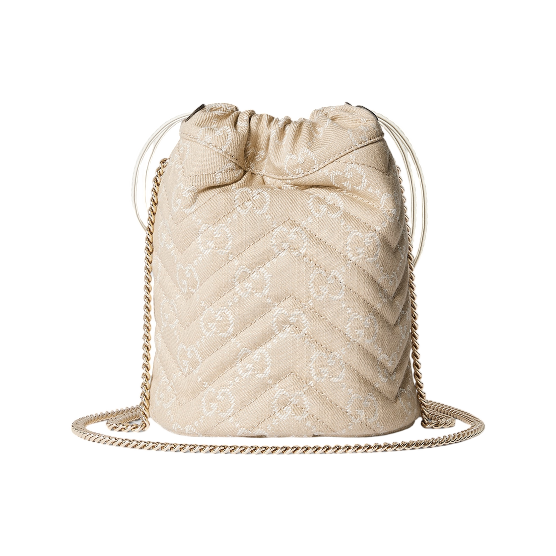 Gucci GG Marmont Small Bucket Bag Taupe White Denim