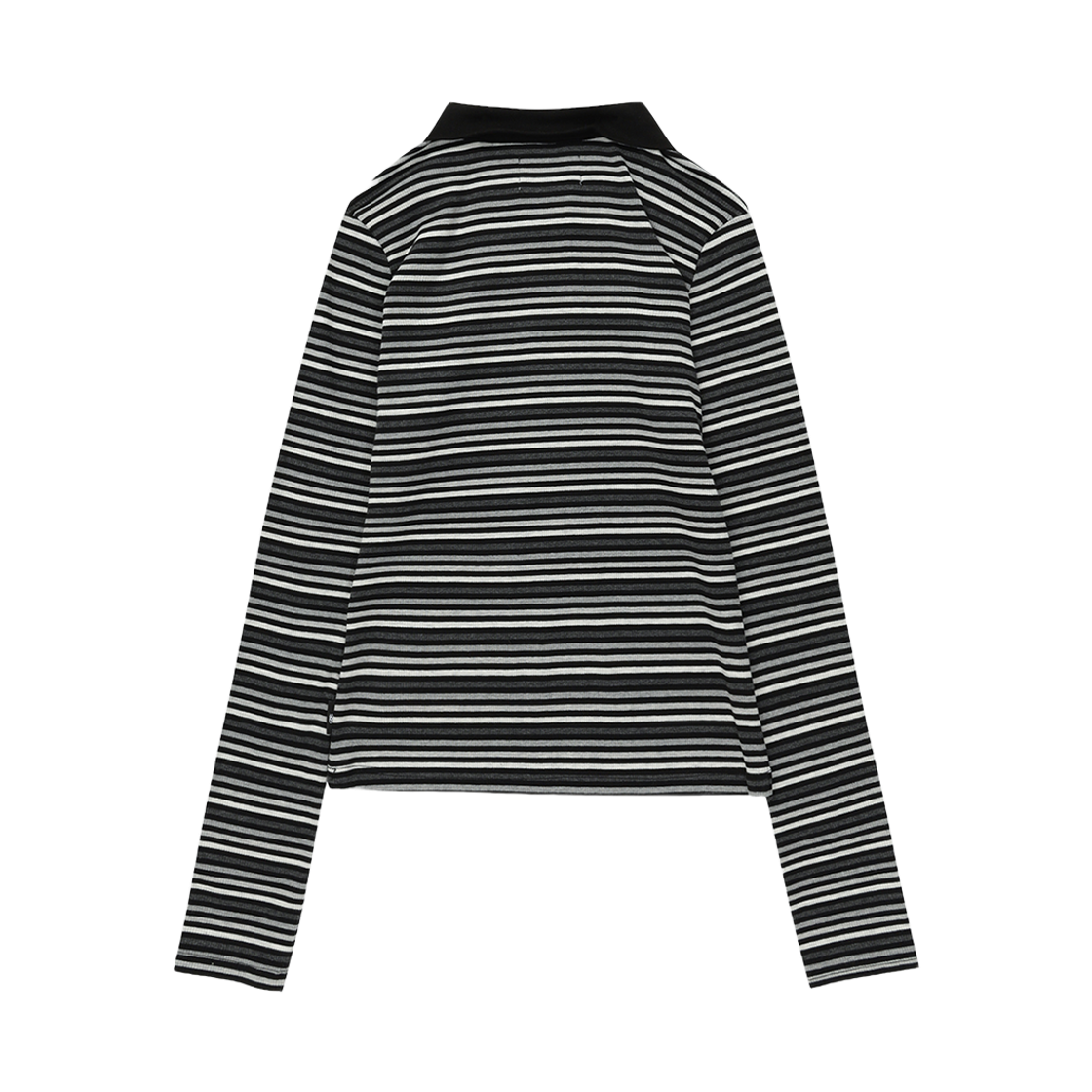 길라 아카이브 크로스 버튼 카라 스트라이프 롱 슬리브 차콜