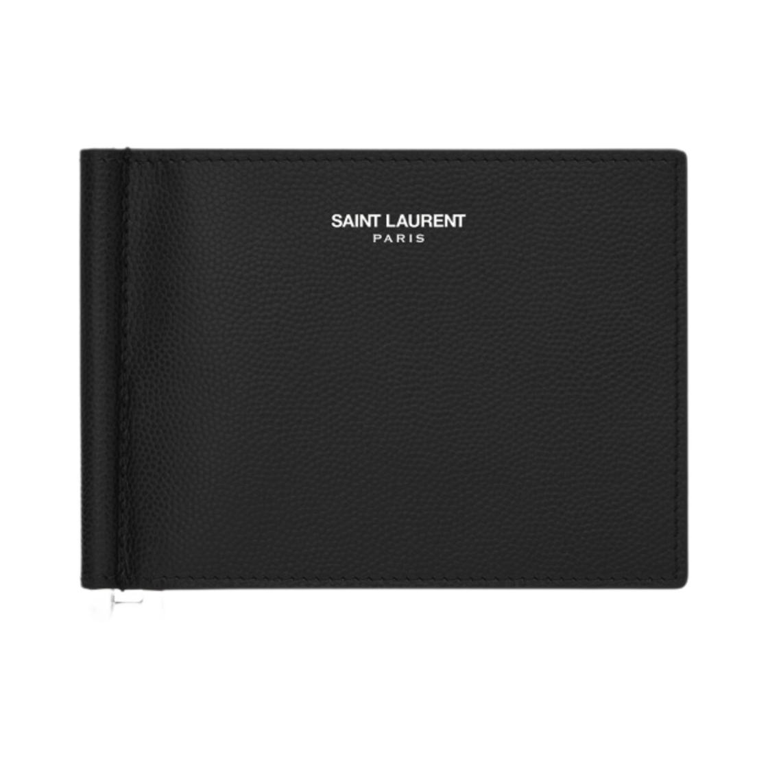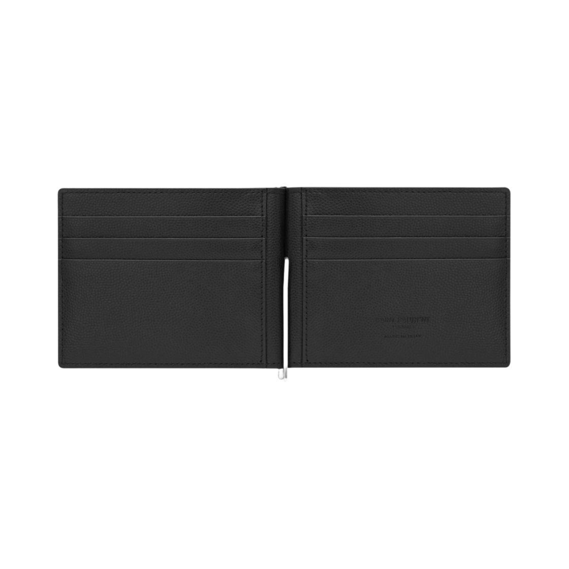 Saint Laurent Bill Clip Wallet in Grain de Poudre Embossed Leather Black