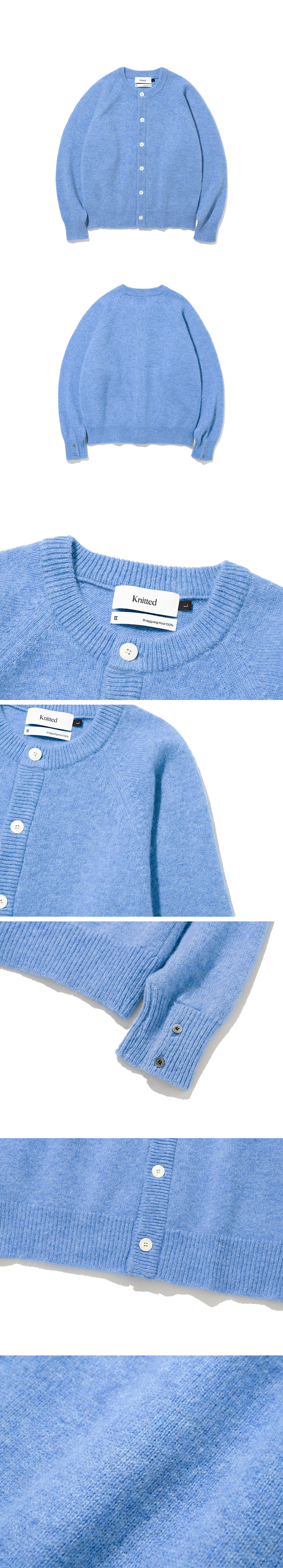 니티드 쉐기독 울 100% 라운드 가디건 블루