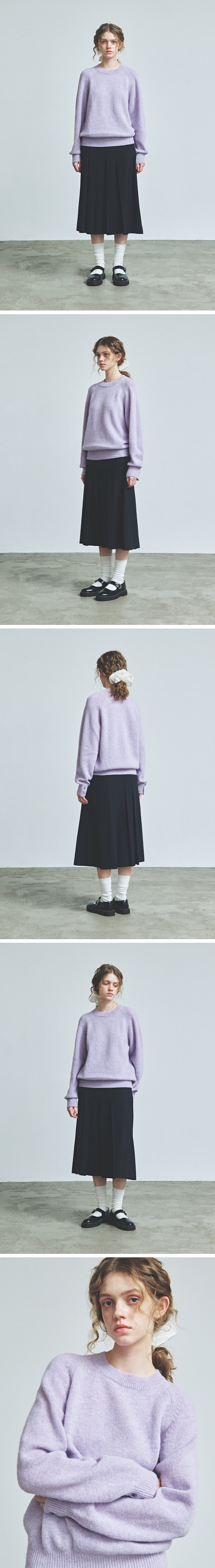 니티드 쉐기독 울 100% 라운드 니트 라벤더
