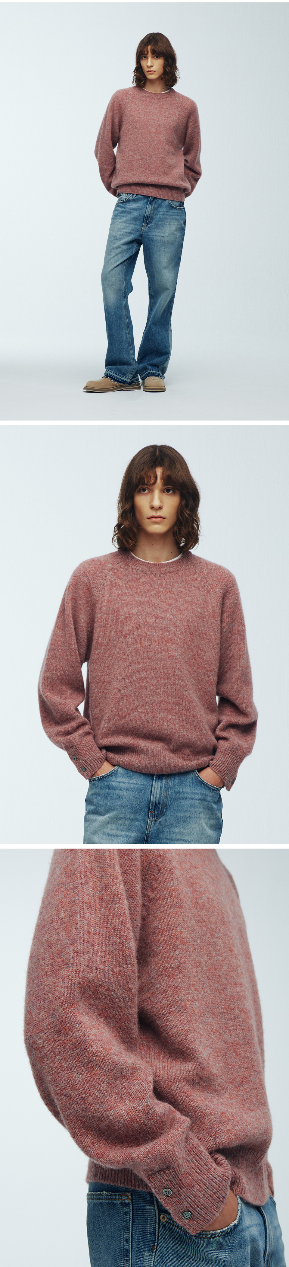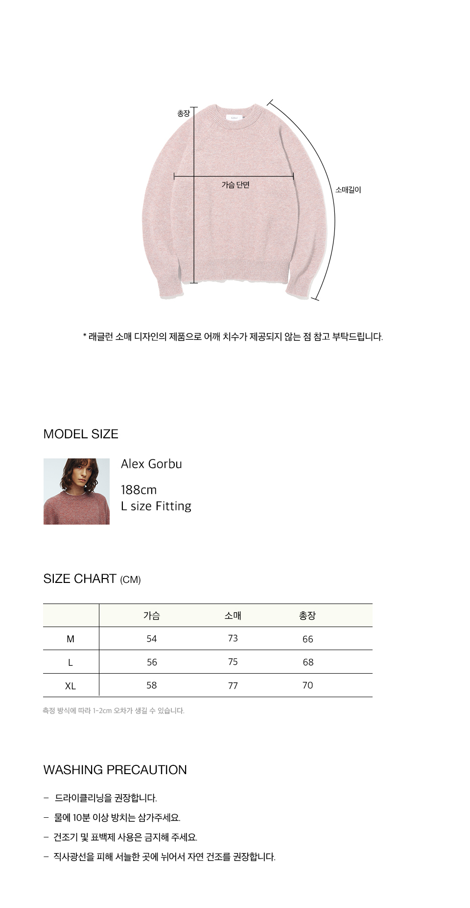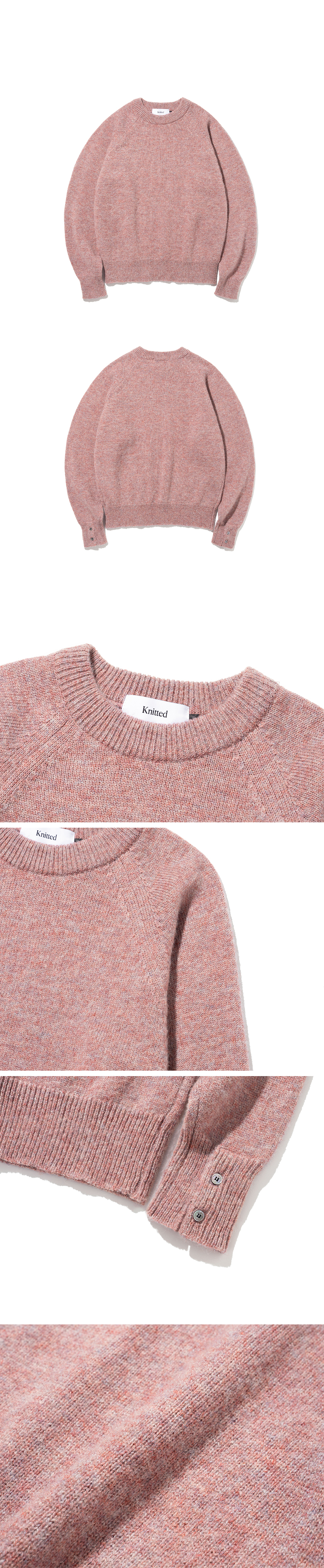 니티드 쉐기독 울 100% 라운드 니트 핑크