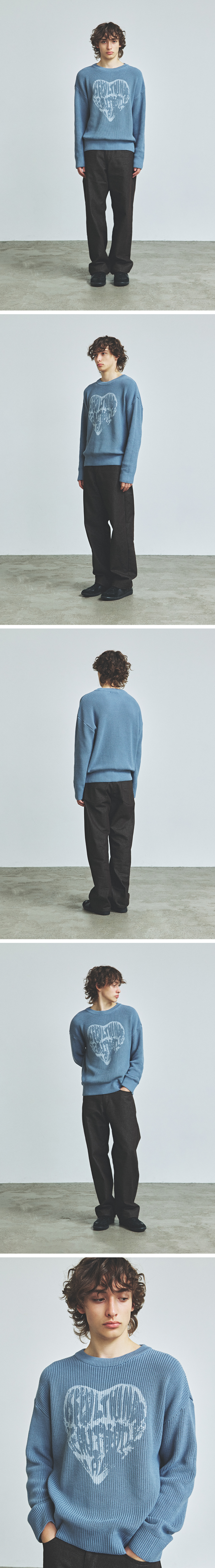 니티드 빈티지 하트 라운드 니트 스톤 블루