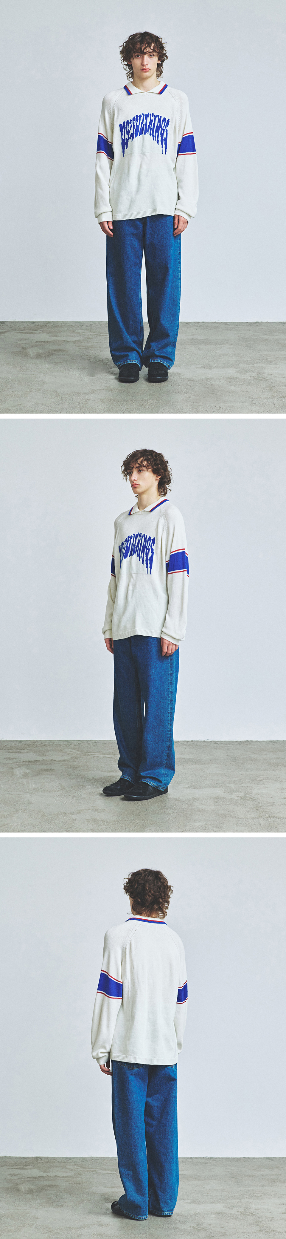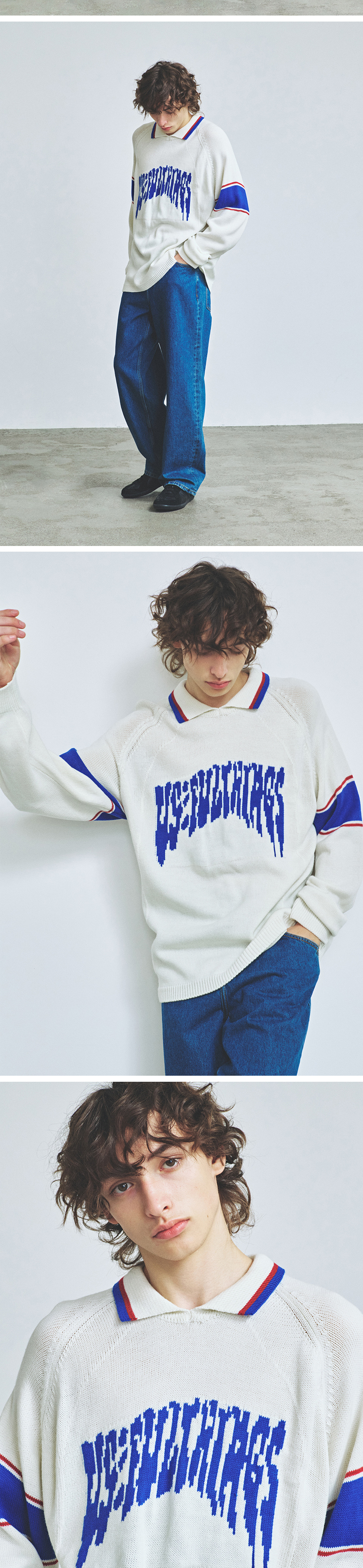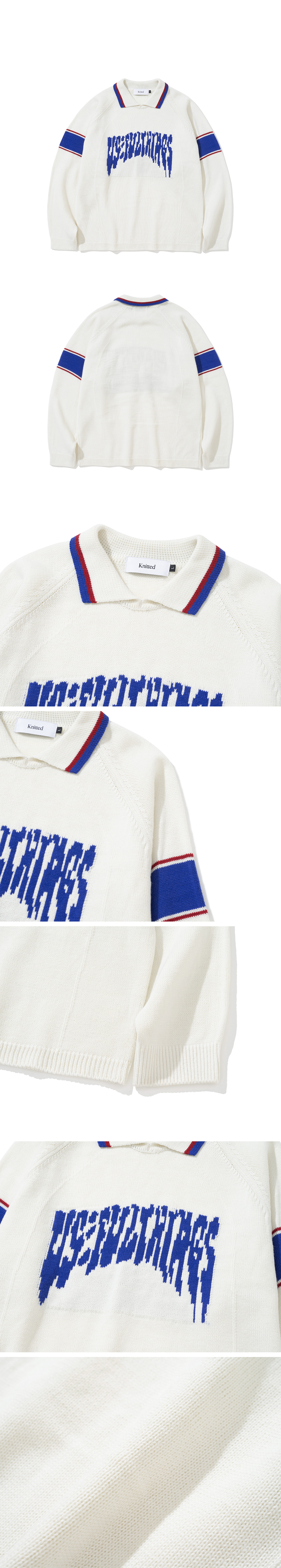 니티드 바시티 자카드 카라 니트 오프 화이트