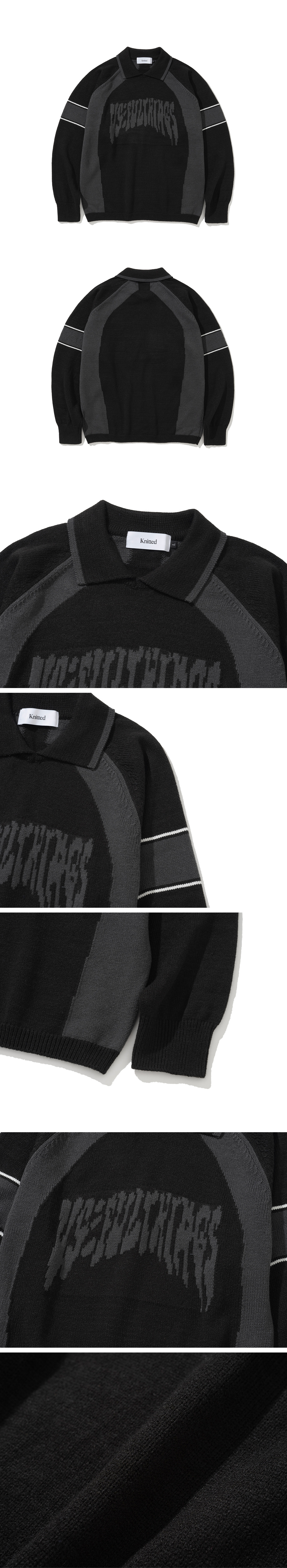 니티드 바시티 자카드 카라 니트 블랙