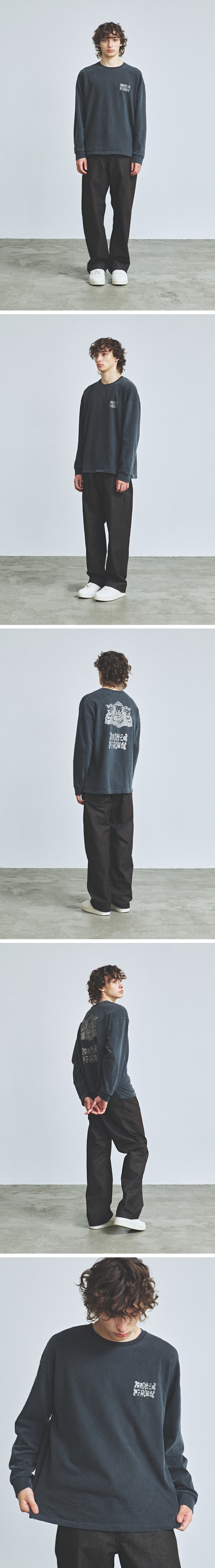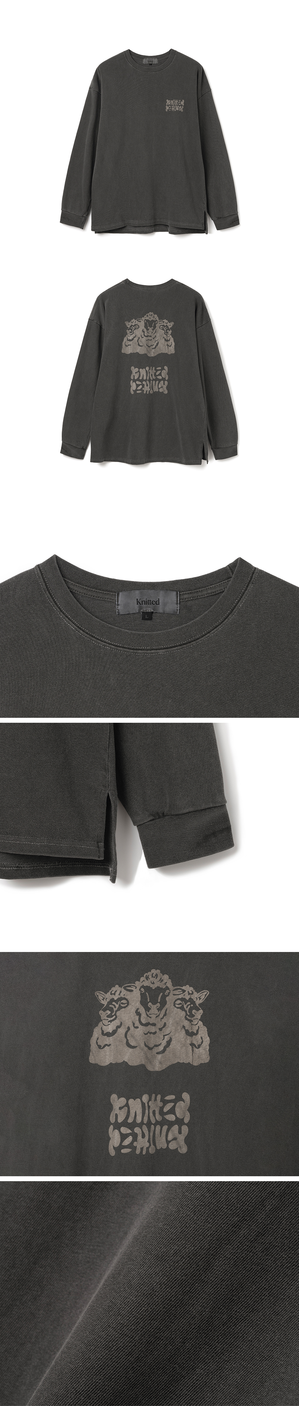 니티드 피그먼트 롱 슬리브 티셔츠 워싱 차콜